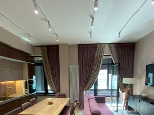 Все комнаты укомплектованы необходимой мебелью от ведущих производителей из высококачественных материалов. Кухонный гарнитур оборудован бытовой техникой. Установлена приточно-вытяжная вентиляция, сигнализация и видеонаблюдение. Красиво оформлено освещение в квартире, много вариантов переключений. В санузле дорогая сантехника Agape. В гостинной мебель от итальянского производителя Frighetto. Установлена дорогая музыкальная апаратура JM Lab с усилителем ARKAM. В квартире есть сейф. При необходимости возможно приобретение нового дивана в свободную комнату.