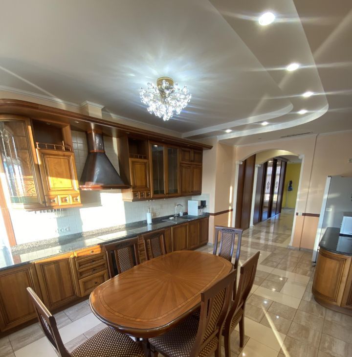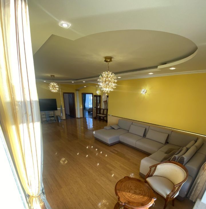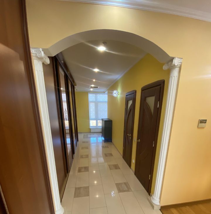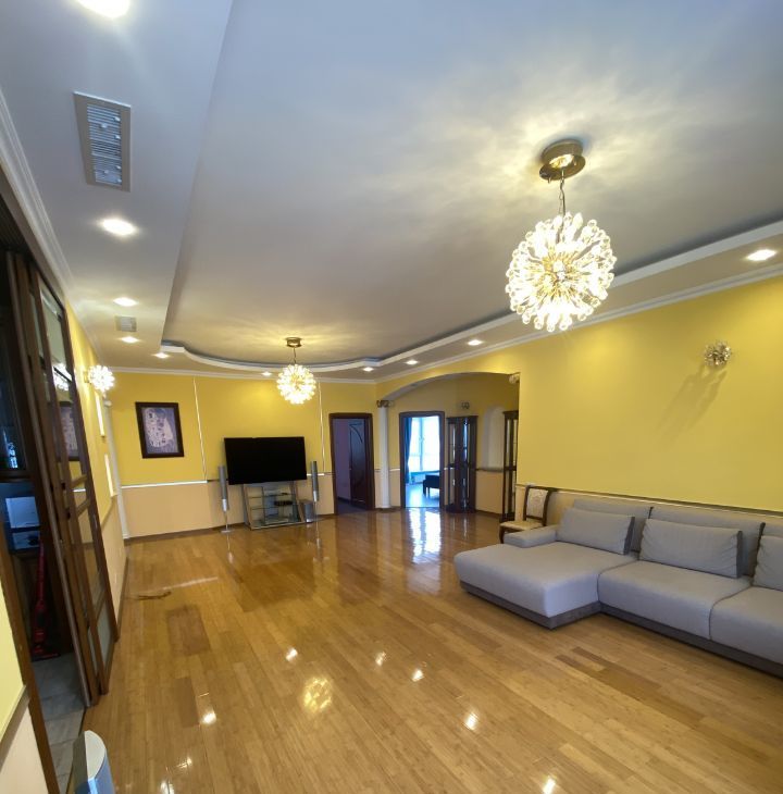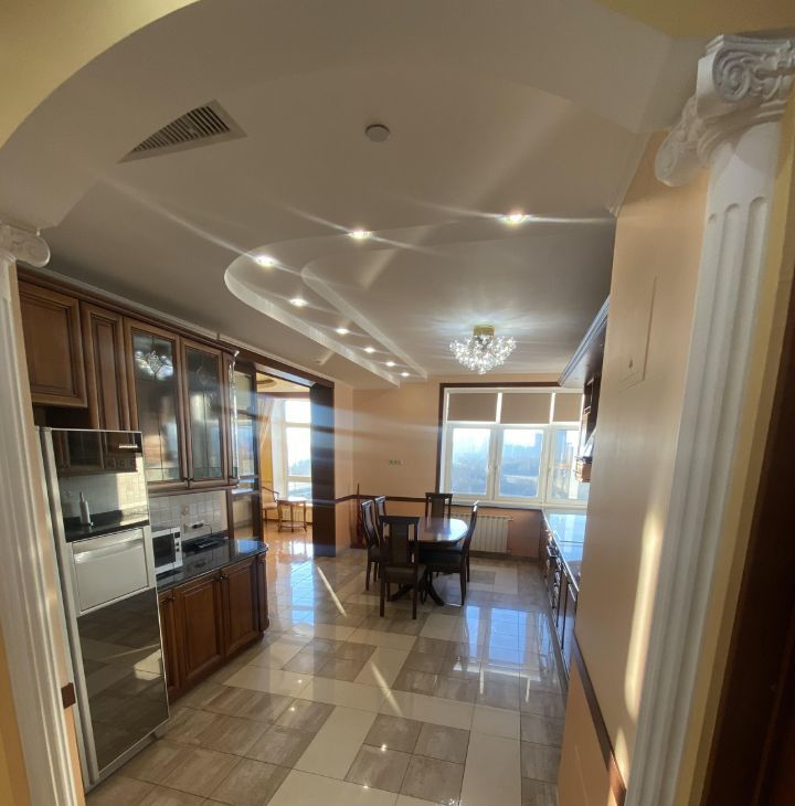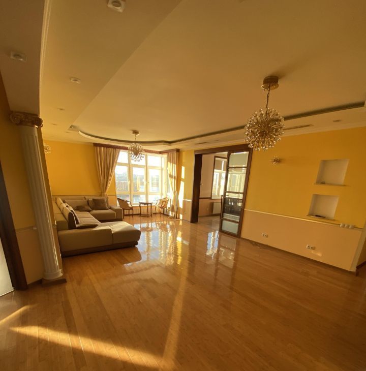 Сдаётся просторная четырёхкомнатная квартира в современном жилом комплексе на пятом этаже кирпичного дома 2003 года постройки. Общая площадь квартиры составляет 168,7 кв. м, а высота потолков — 3 метра. Окна выходят как на улицу, так и во двор. До станции метро "Щукинская" всего 12 минут пешком.