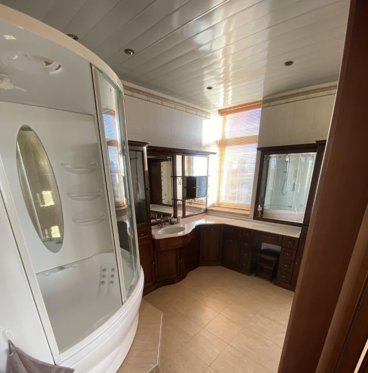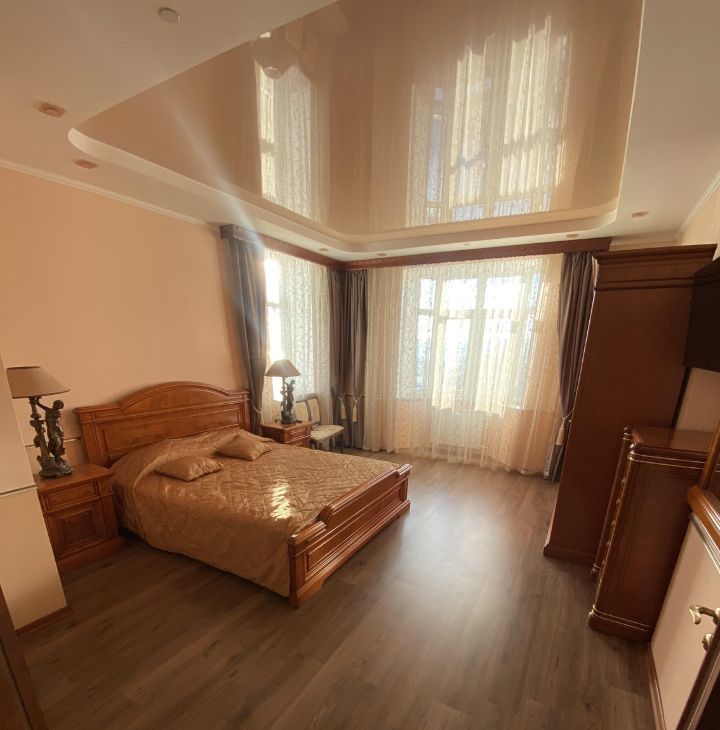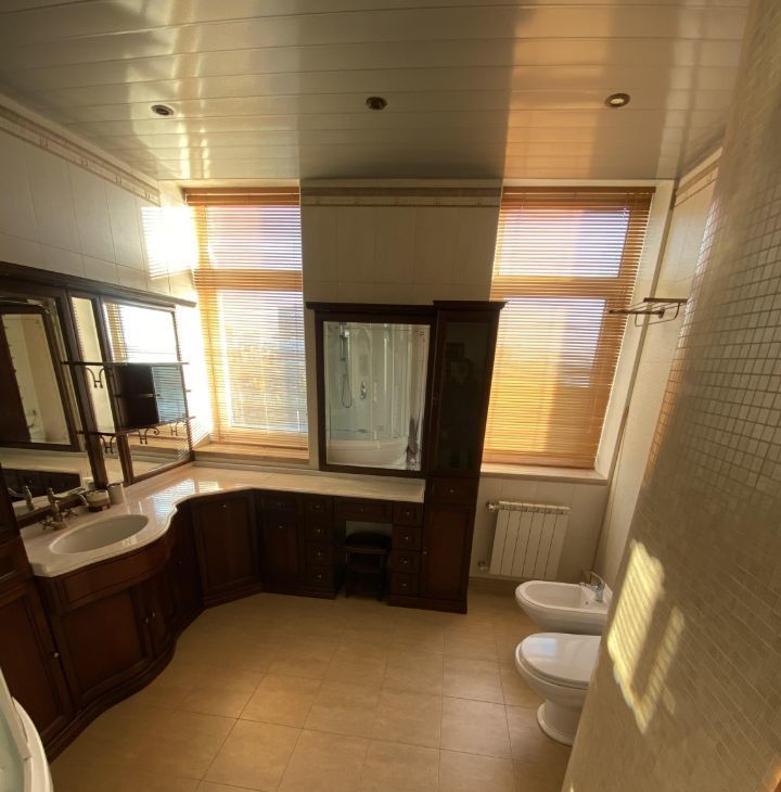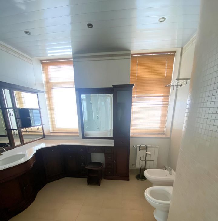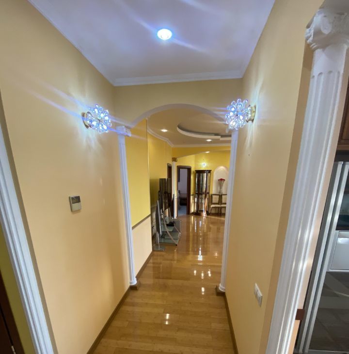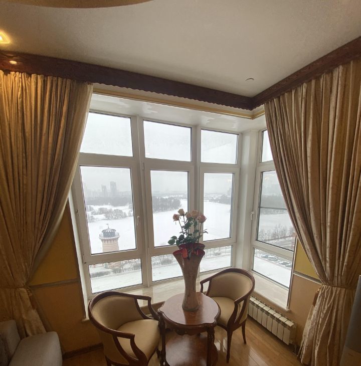 Сдаётся просторная четырёхкомнатная квартира в современном жилом комплексе на пятом этаже кирпичного дома 2003 года постройки. Общая площадь квартиры составляет 168,7 кв. м, а высота потолков — 3 метра. Окна выходят как на улицу, так и во двор. До станции метро "Щукинская" всего 12 минут пешком.