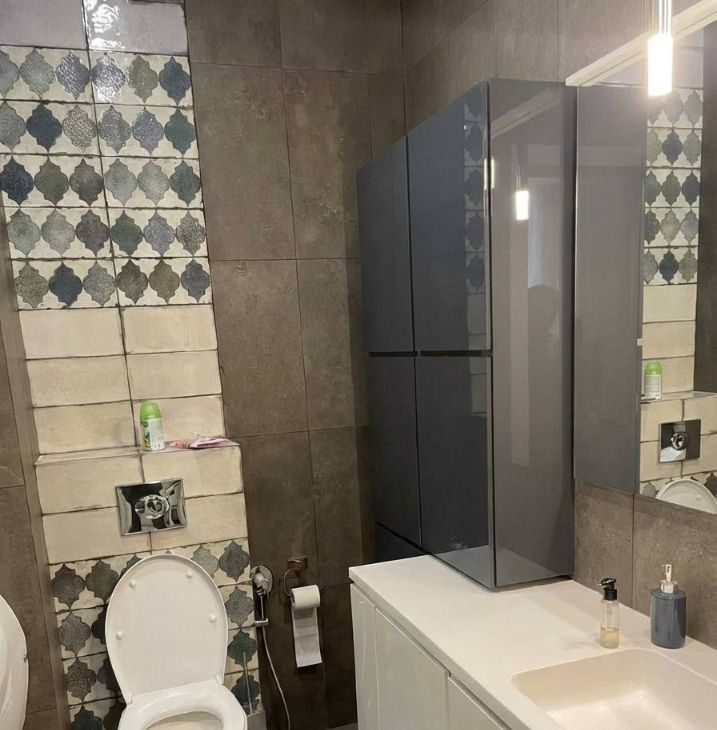 Санузел раздельный, отделан стильной плиткой. Для хранения вещей предусмотрены встроенные шкафы и отдельная гардеробная.