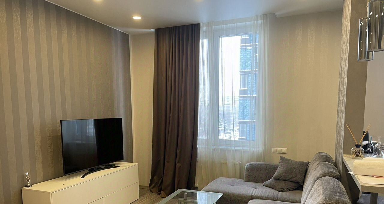 В квартире выполнен дизайнерский ремонт. Комнаты изолированные, что создает уют и комфорт для каждого члена семьи. На кухне установлена современная бытовая техника, включая холодильник, плиту и микроволновую печь. Также имеется посудомоечная машина. Стиральная машина, сушильная машина. Санузел раздельный, оформлен стильной плиткой. В квартире предусмотрены шкафы для хранения вещей и гардеробная. Из окон открывается приятный вид на город. Для вашего удобства в квартире установлен телевизор. Балкон позволяет наслаждаться свежим воздухом.