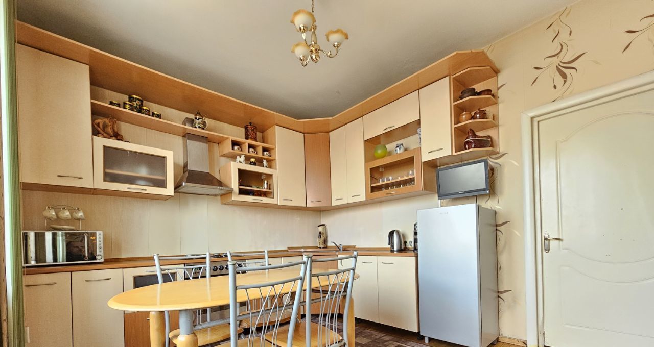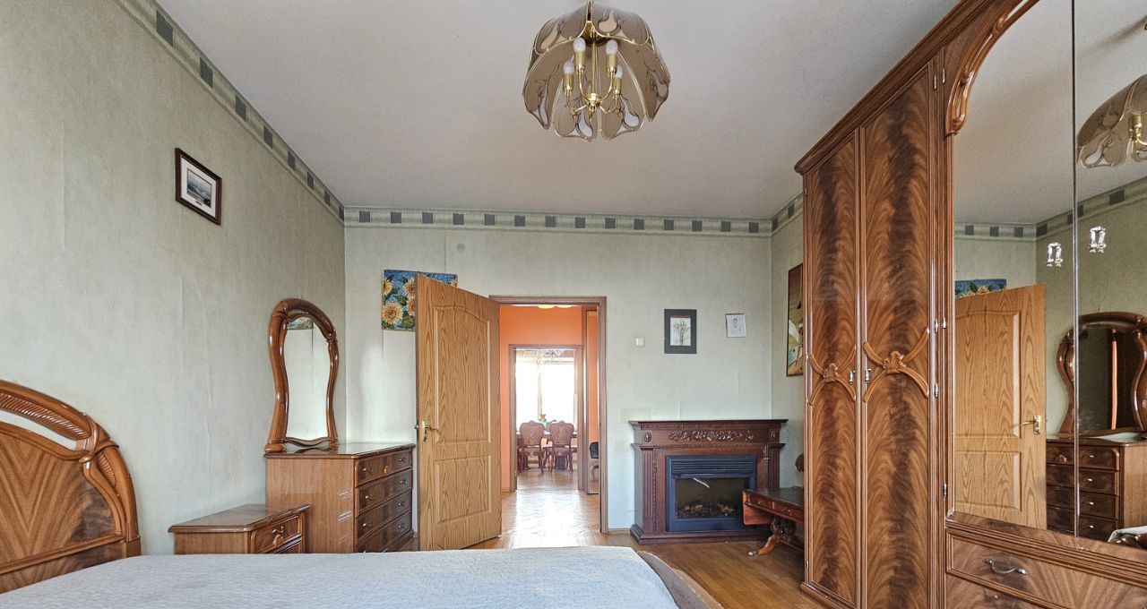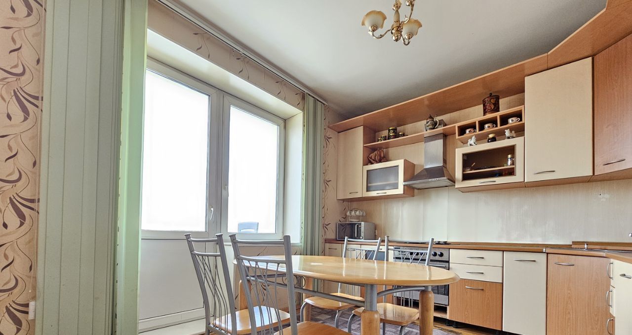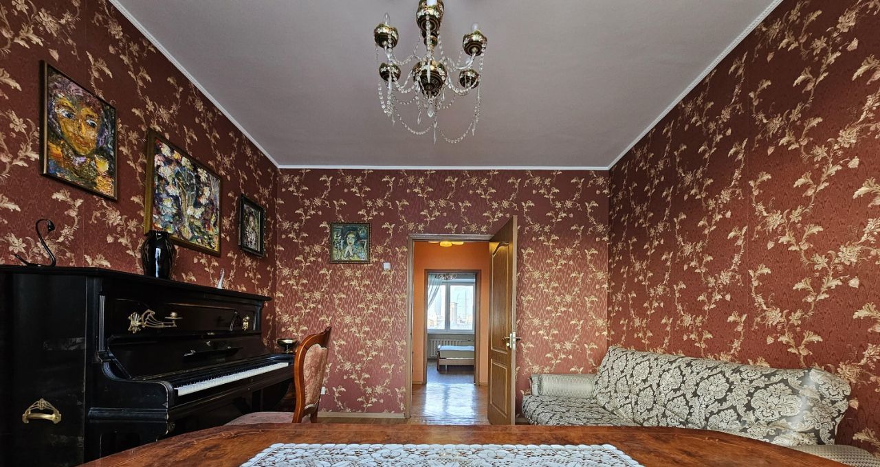 Просторная четырехкомнатная квартира площадью 104 кв. м с высотой потолков 3.1 метра расположена на шестом этаже шестиэтажного дома, построенного в 1940 году. Жилая площадь составляет 71.2 кв. м, а кухня 13.1 кв. м, что дает достаточно места для комфортного проживания.