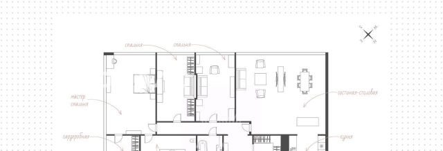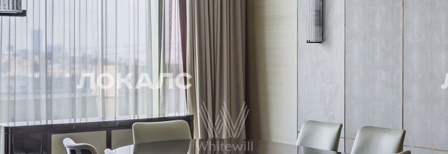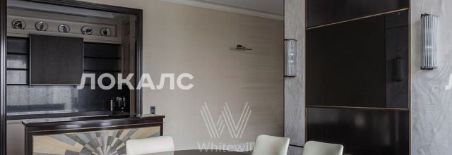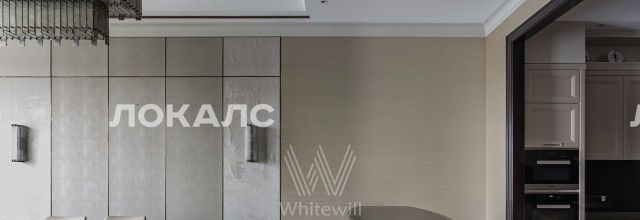 Просторная квартира с тремя спальнями в комплексе премиум-класса "Четыре ветра" в Тверском районе. Квартира площадью 186 м² расположена на девятом этаже. Интерьер оформлен в современном стиле в лаконичных тёплых тонах, в отделке использован натуральный мрамор, ценные породы дерева, шелк, кожа ската.