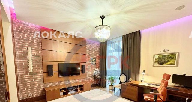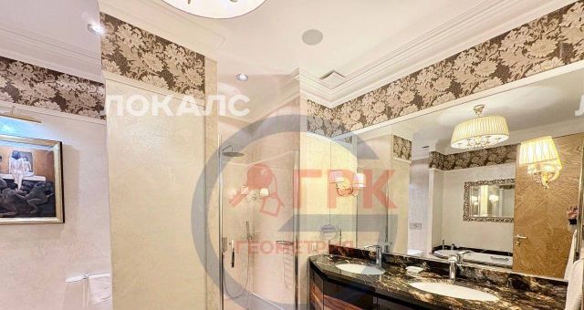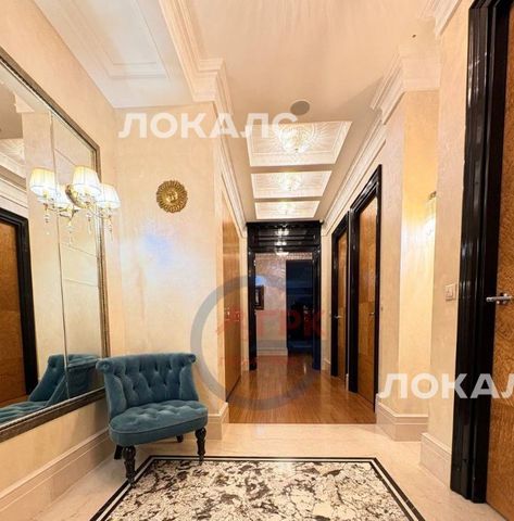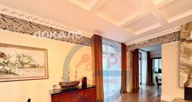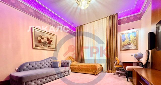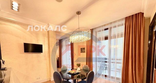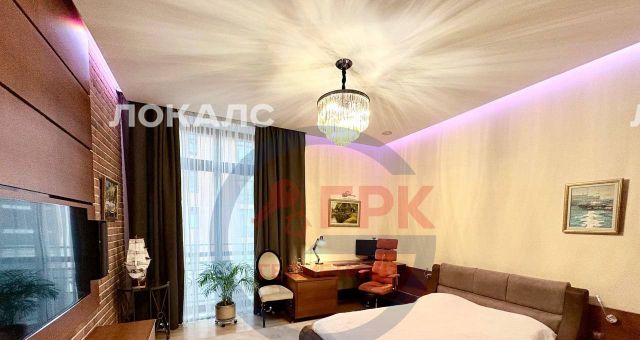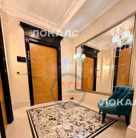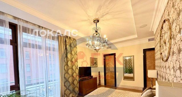 For rent is a 4-room apartment in close to the "Novokuznetskaya" metro station in the "Chetyre solntsa" residential complex. The apartment has a designer renovation. There are panoramic windows, central air conditioning, heated floors, and an acoustic system Heos spread throughout the apartment. The layout is functional: three bedrooms, 2 dressing rooms, three bathrooms, a sauna, and a laundry room. The kitchen is equipped with a modern set of all necessary appliances. There is a fireplace in the living room. The complex is of business class, with a closed territory, round-the-clock security and a concierge. A parking space is included in the price, located in the underground parking and equipped with an electric car charging station.