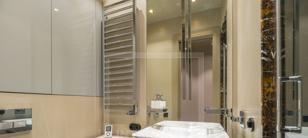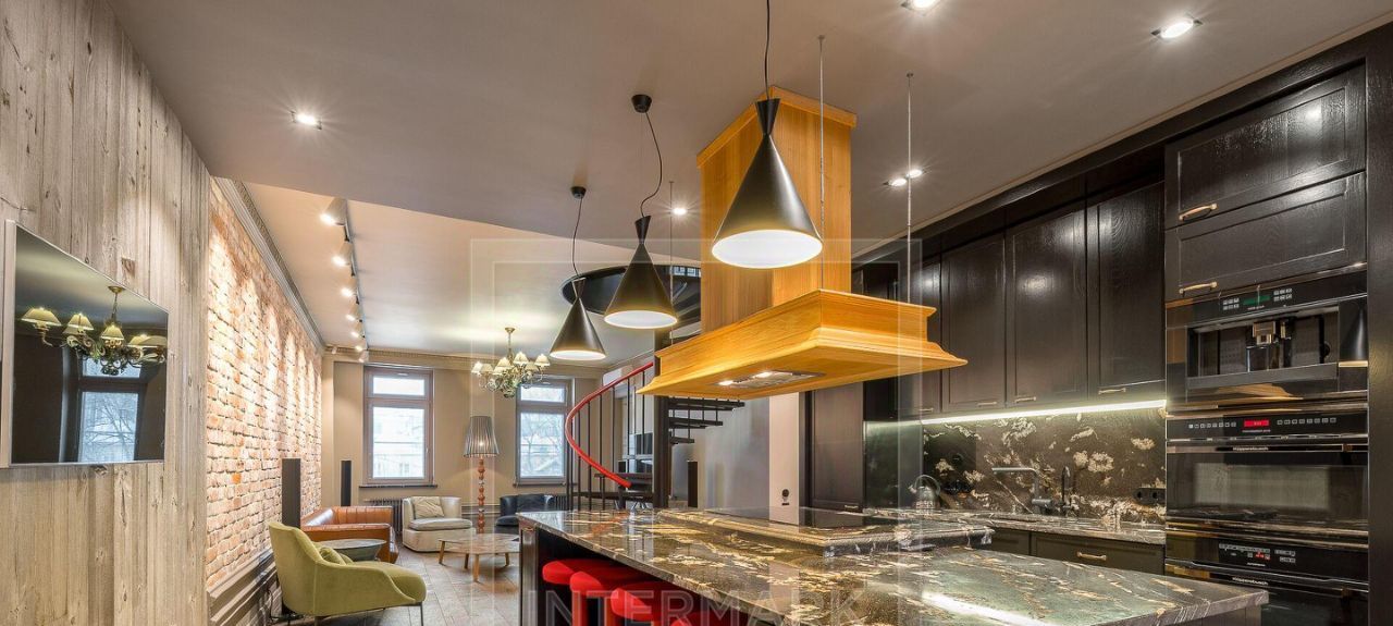 ID 32474. Современная двухуровневая 4-комнатная квартиранта на Патриарших прудах на Б. Патриаршем пер., д. 4. Общая площадь 183 кв.м. Высокие потолки. В квартире выполнен современный авторский дизайн-проект с использованием натуральных и качественных материалов в отделке. Полная комплектация мебелью и техникой. Установлен кондиционер, теплые полы. Квартира полностью укомплектована мебелью и техникой ведущих брендов. Установлены кондиционеры, теплые полы, высокоскоростной интернет. Функциональная планировка: просторная гостиная совмещенная с кухней-столовой 70 кв.м., 3 спальни, 3 ванные комнаты, постирочная комната, 4 гардеробные комнаты, несколько кладовок. Дом расположен в районе с развитой пешеходной доступностью: в двух шагах от дома — лучшие рестораны, уютные кафе, бары, бутики, салоны красоты, а также музеи и театры, а Патриаршие пруды — идеальное место для прогулок в любое время года. В квартире возможно проживание с детьми. Важно учесть, что дом без лифта, квартира расположена на пятом этаже.
