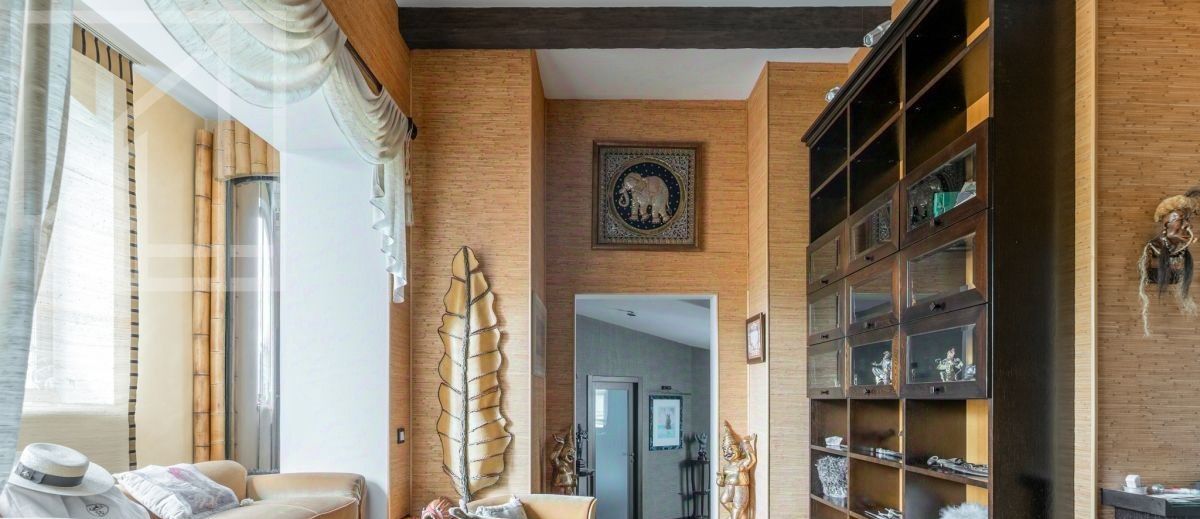 Планировка квартиры: гостиная с настоящим дровяным действующим камином, изолированная кухня, две спальни, кабинет, гардеробная, мансарда и 3 с/у. Качественный ремонт выполнен по авторскому дизайн-проекту. Квартира полностью меблирована и оснащена всей необходимой техникой.