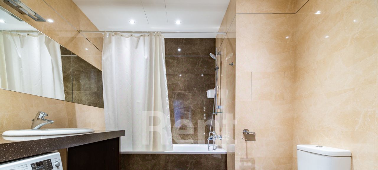 БЕЗ КОМИССИИ ДЛЯ АРЕНДАТОРА. Предлагается просторная квартира с террасой в комплексе "Триумф Палас". Планировкой предусмотрены гостиная, объединенная с большой кухней, а также три изолированные комнаты. Кухня располагает полным набором бытовой техники, включая посудомоечную машину и духовой шкаф. Оборудованы две ванные комнаты. Установлены системы кондиционирования и тёплых полов.
