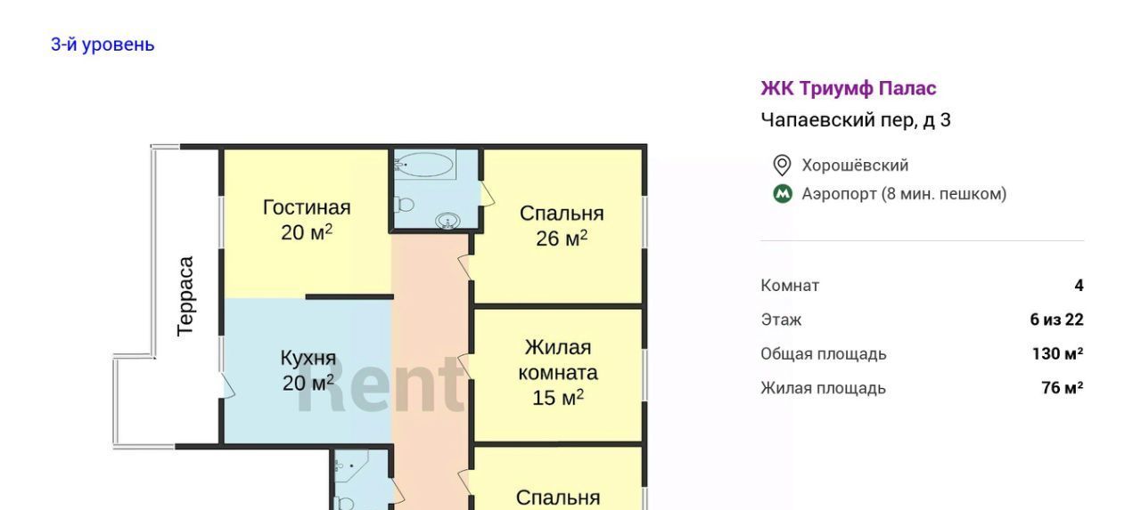 На охраняемой территории комплекса есть паркинги, детская площадка, фитнес с бассейном. Развитая инфраструктура поблизости: магазины, кафе и рестораны, школы, вузы. В 7-8 минутах - метро "Аэропорт" и ТЦ "Галерея Аэропорт". Большой выбор зеленых зон для прогулок, включая Чапаевский парк. Удобный выезд на Ленинградский проспект.