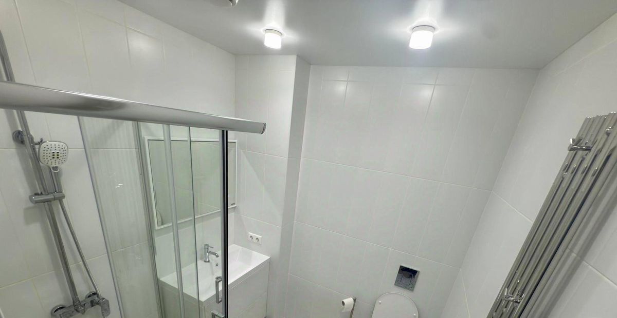 В квартире сделан качественный евроремонт. Просторная кухня площадью 20 кв. м оснащена всей необходимой мебелью и современной техникой: кондиционер, холодильник, посудомоечная и стиральная машины. В квартире два санузла, в одном из которых есть и ванна, и душевая кабина.