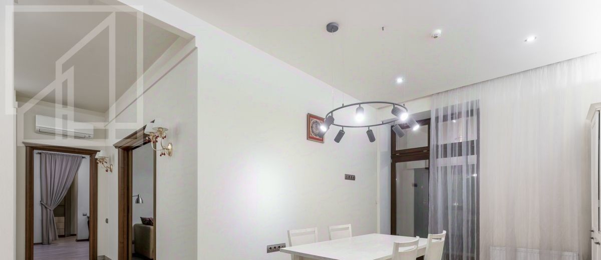 Планировка: кухня, гостиная с камином, основная спальня с совмещенной ванной комнатой и гардеробной, две спальни, одна из которых с совмещенным санузлом, прихожая, гостевой туалет, постирочная и просторная лоджия. Квартира полностью меблирована и оснащена всей необходимой бытовой техникой. Вывоз и докупка обсуждается.