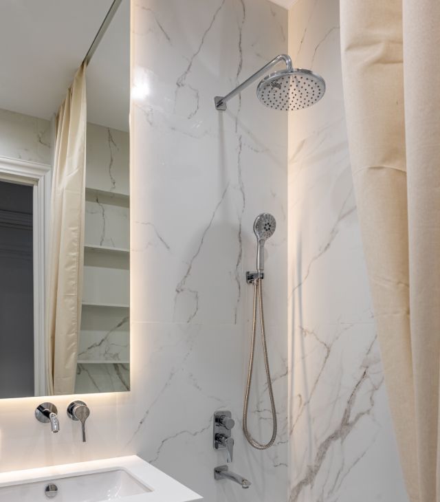 • 2 совмещённых санузла, оборудованных ванной и душевой кабиной;