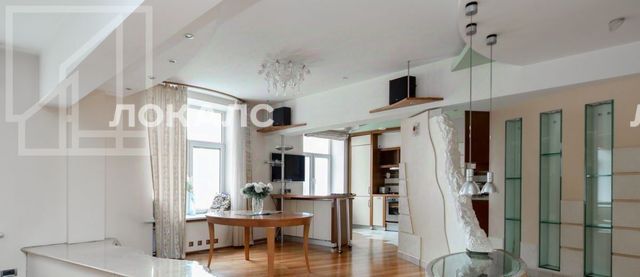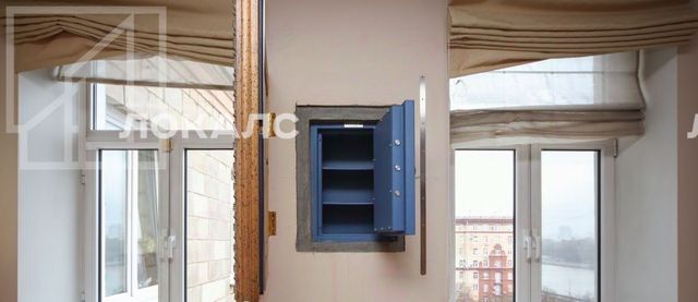 Планировка: гостиная-кухня, три спальни, три санузла, гардеробная. Потолки 3.1 м. Выполнен ремонт в современном стиле. Квартира полностью меблирована, установлена качественная бытовая техника. Виды на набережную и в тихий двор.