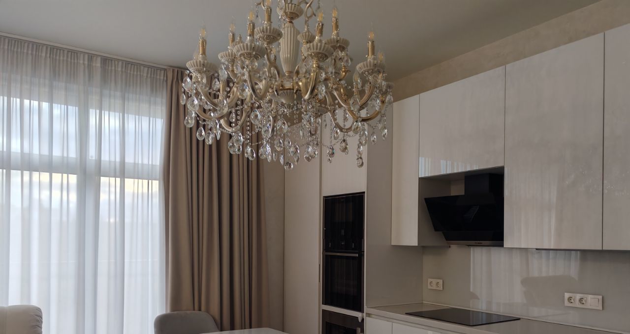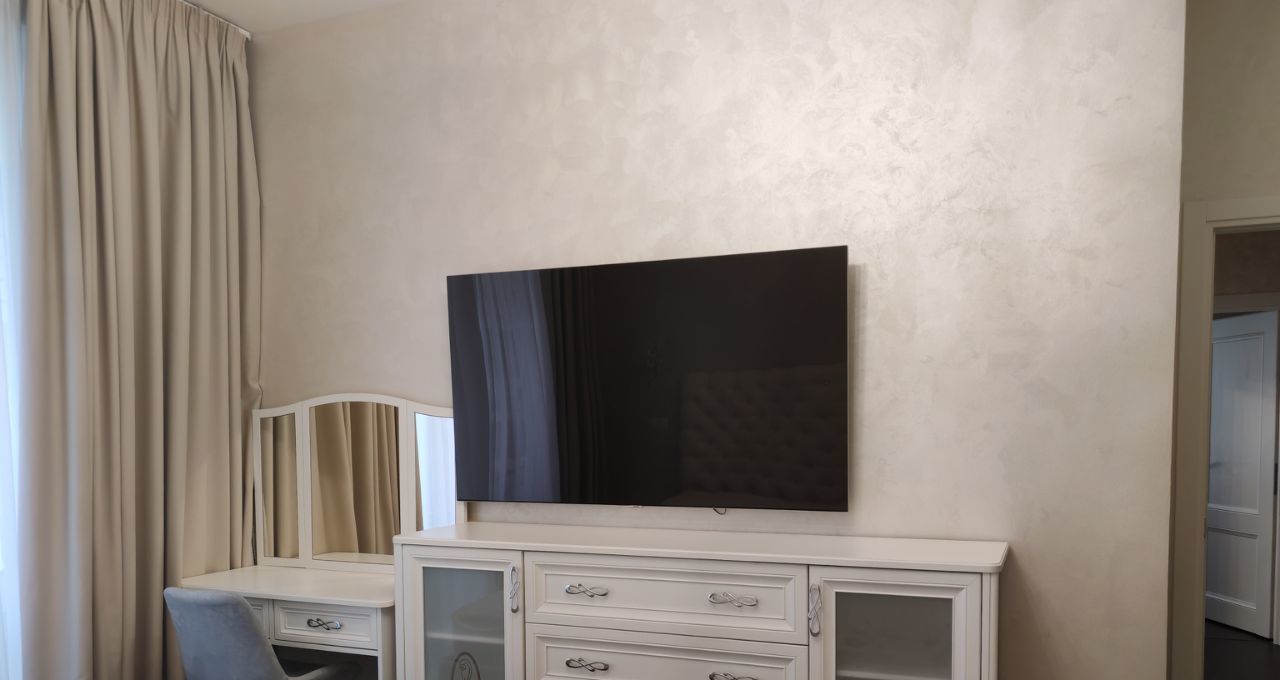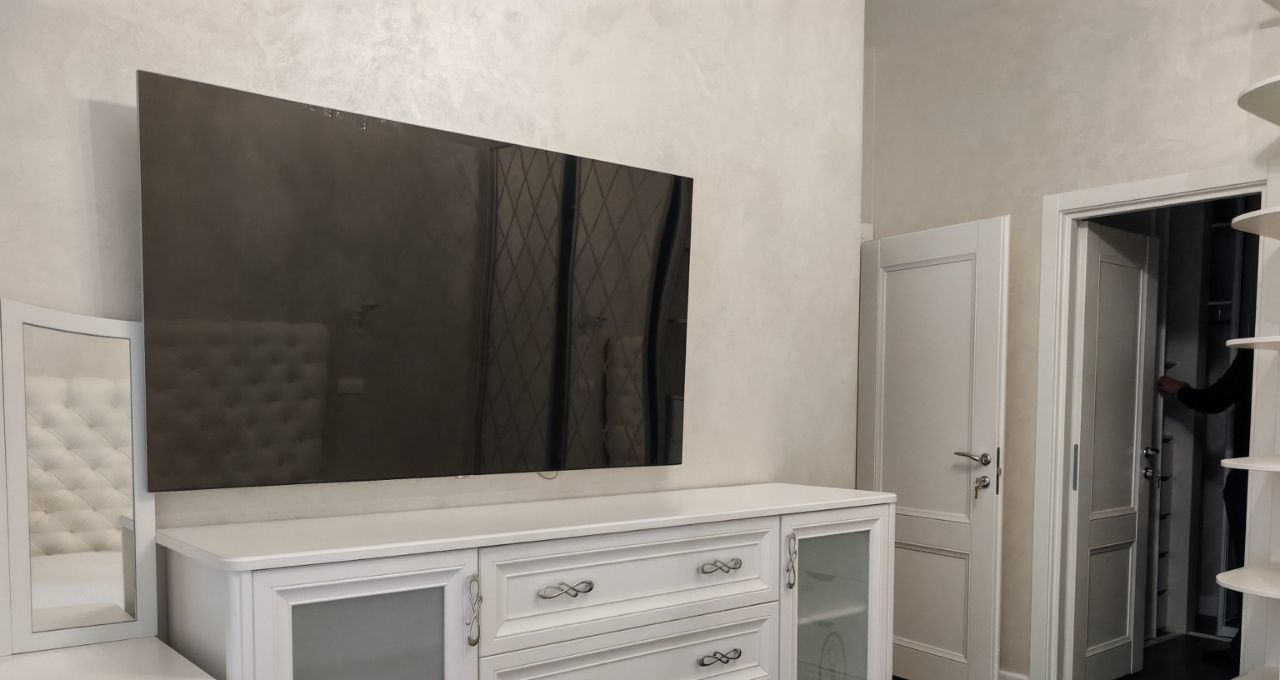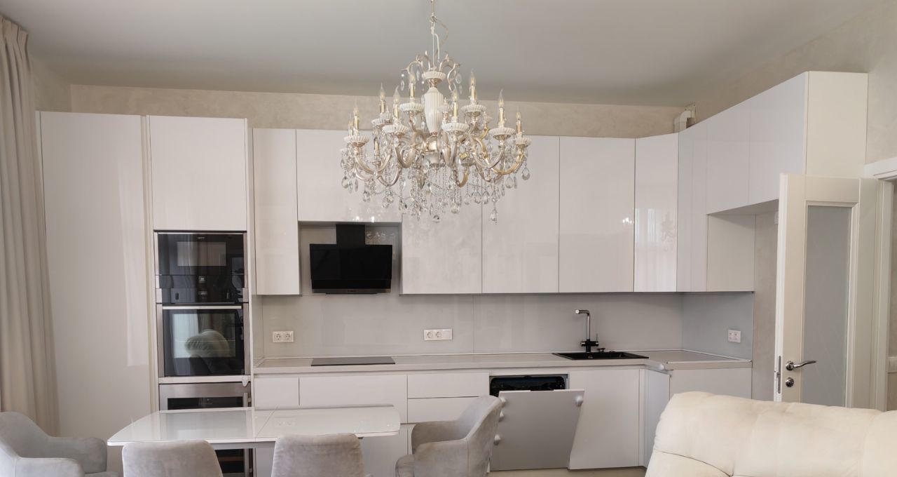 Сдаётся на длительный срок 4-х комнатная квартира. Ранее не сдавалась. Планировка включает гостиную, совмещённую с кухней, мастер-спальню, детскую с кроватью и комнату с диваном. В квартире два гардероба, встроенные шкафы в прихожей, а также шкафы и комоды в каждой спальне. Имеются два санузла. При необходимости предоставляются два машиноместа.