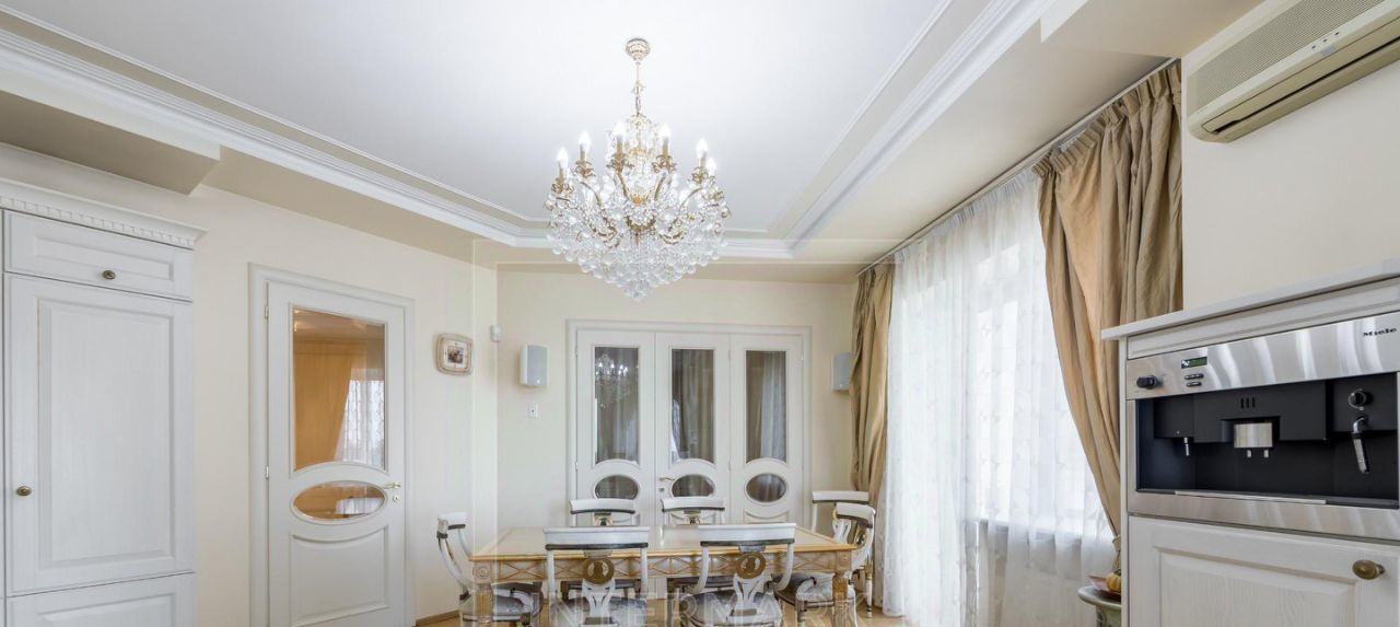 ID 14481. Просторная 4-комнатная квартира в современном кирпичном доме в районе Филевского парка. Дорогой дизайнерский ремонт в классическом стиле. Общая площадь 180 кв. м. Удобная планировка: кухня-столовая, гостиная, 3 полноценные спальни, 2 ванных комнаты (установлены и ванна, и душ), 2 застекленные лоджии. Квартира находится на высоком этаже, а из окон открывается прекрасный панорамный вид. Хрустальные люстры и светильники создают неповторимую уютную атмосферу. Квартира обставлена эксклюзивной мебелью и оснащена техникой от ведущих производителей (Miele, Kuppersbusch, Bosch). В доме работает круглосуточная охрана, а также есть подземная парковка (машино-место не входит в стоимость). Богатая инфраструктура района: живописные прогулочные места, кафе, рестораны, магазины. Будем рады рассмотреть семьи с детьми.