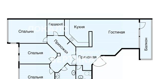 Планировка : кухня - гостиная, балкон, три жилых комнаты, гардеробная, два санузла (ванная, душевая кабина), постирочная.