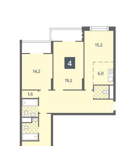 Квартира расположена на 3-м этаже и имеет общую площадь 110 кв. м. Функциональная планировка включает кухню-гостиную, три спальни, одна из которых мастер-спальня с собственной ванной комнатой, три санузла, гардеробную и две уютных лоджии. Окна выходят во двор.