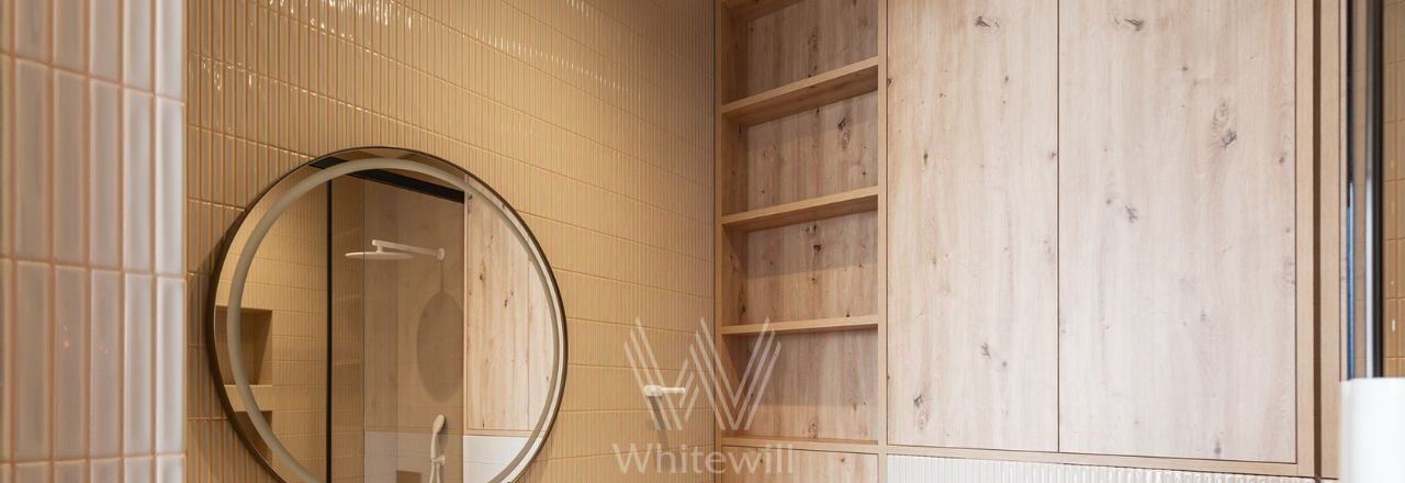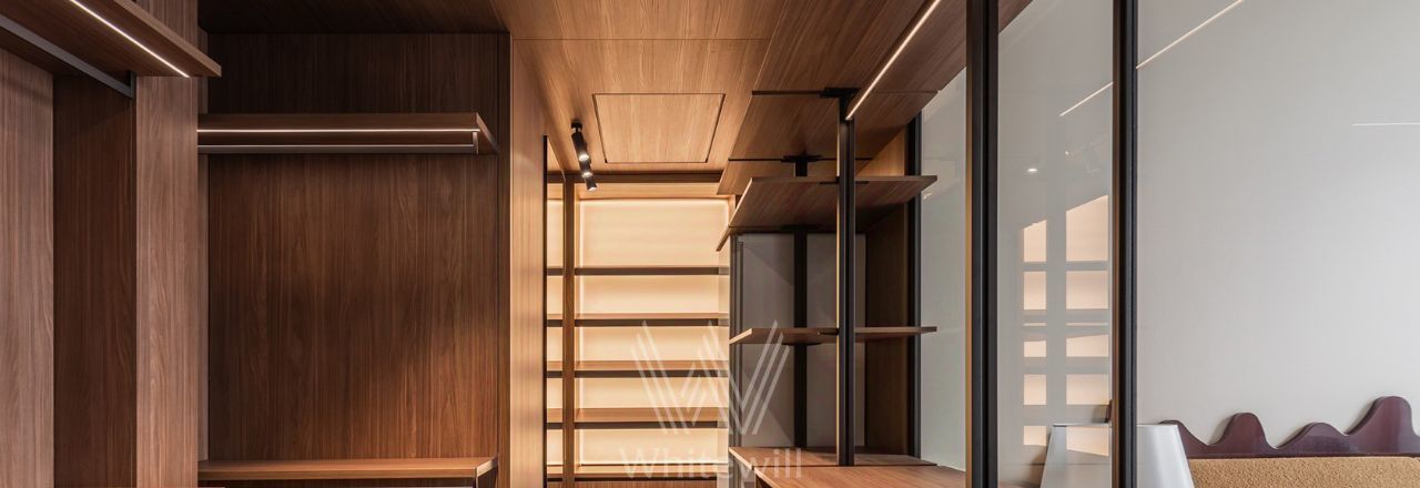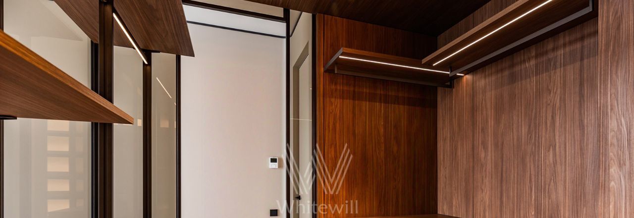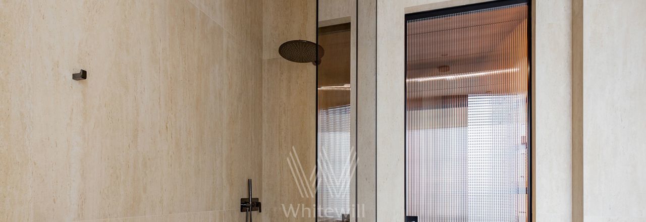 Планировка: светлая угловая кухня-гостиная, мастер-спальня со своей гардеробной и ванной комнатой с окном, вторая спальня со своим санузлом, кабинет, гостевой санузел, постирочная, холл. Квартира полностью укомплектована мебелью и техникой. На кухне организован остров со встроенной варочной панелью, обеденная зона, в гостиной обустроена зона отдыха с уютным диваном у окна.