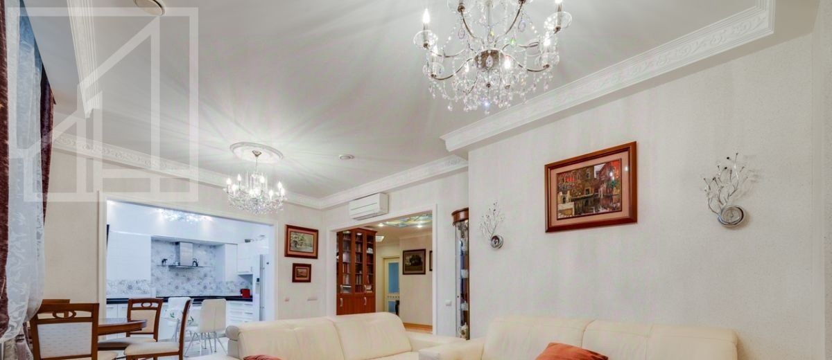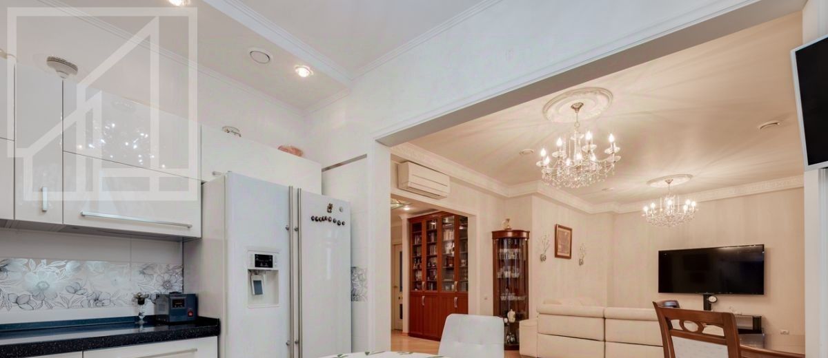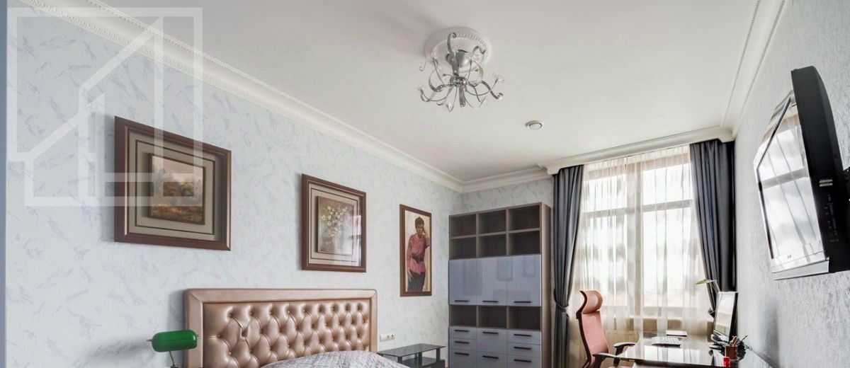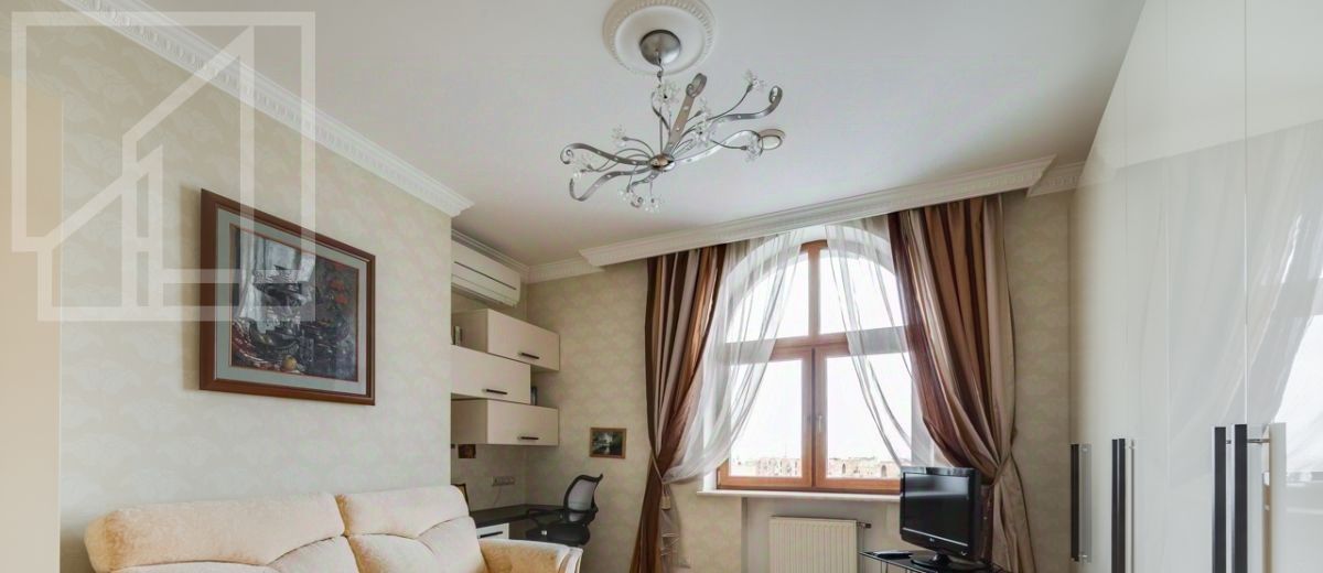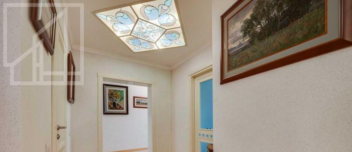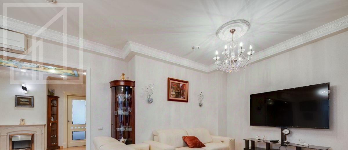 Планировка: кухня-гостиная с обеденной зоной, три изолированных спальни, одна из которых со своим санузлом, совмещенный санузел, просторный холл с камином и собственной библиотекой, застеклённая лоджия, прихожая. Квартира полностью меблирована, в наличии вся необходимая бытовая техника для комфортного проживания.