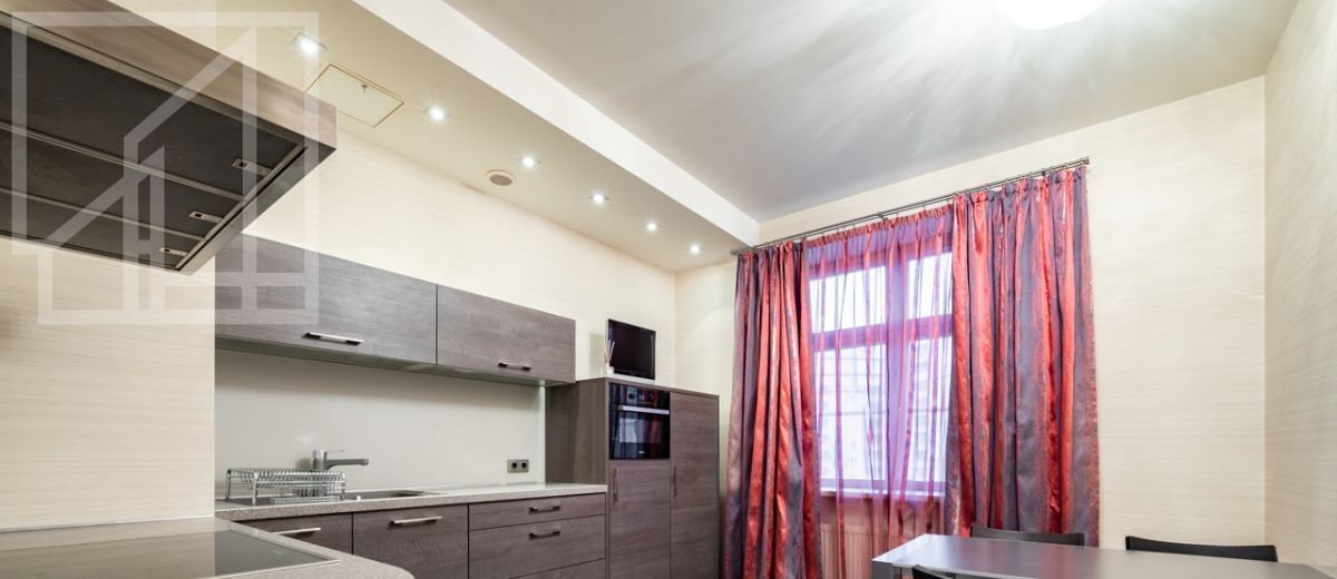 Планировка: гостиная, изолированная кухня, мастер-спальня с санузлом с душевой кабиной и гардеробной, спальня, гостевая спальня или кабинет, санузел с душевой кабиной, постирочная, открытая терраса площадью 20 кв. м. Окна выходят во двор. Потолки 3,1м. Выполнен ремонт в современном стиле. Квартира сдается впервые, установлена новая мебель, бытовая техника и сантехника.