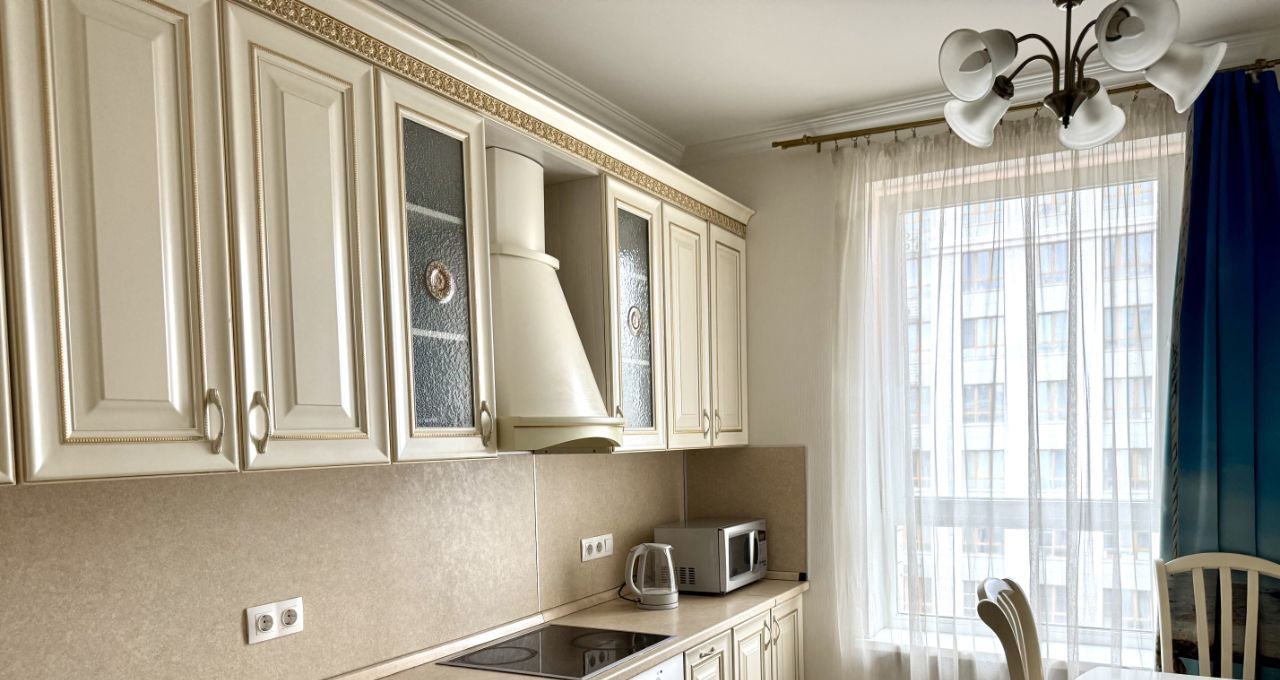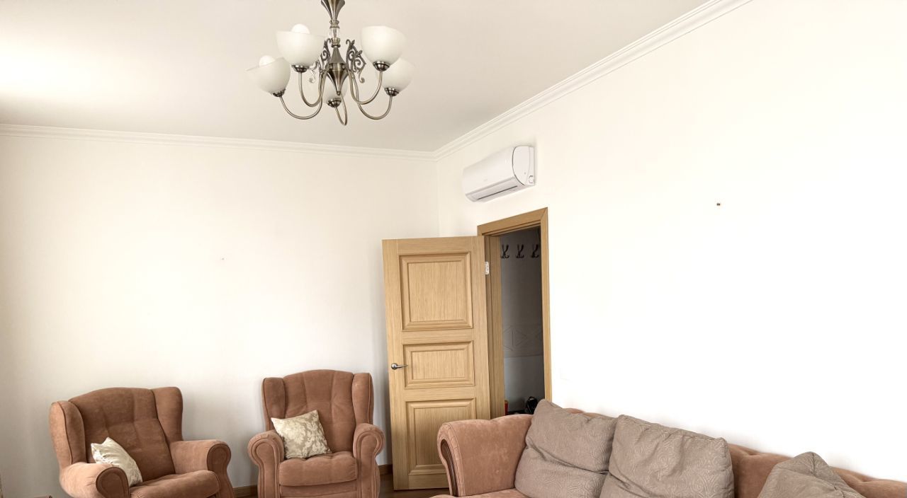 Квартира полностью оборудована техникой: варочная панель, духовка, СВЧ, вытяжка, посудомоечная машина, холодильник, чайник, кондиционеры в каждой комнате, стиральная машинка, телевизор в гостиной.