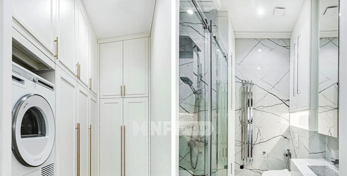 Планировка: гостиная-кухня, мастер-спальня с гардеробной, гостевая спальня, кабинет, 2 полноценных санузла, гардеробная при входе, постирочная.