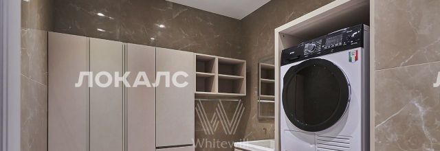 Планировка включает светлую гостиную с обеденным столом и угловым диваном, объединенную с кухней. В кухне установлена встроенная бытовая техника. В мастер-спальне организована персональная гардеробная и санузел. Дополнительно спланировано 2 спальни, санузлы, холл. Апартаменты укомплектованы итальянской эксклюзивной мебелью. Из окон открывается вид на внутренний двор. Два машиноместа в подземном паркинге входят в стоимость аренды.