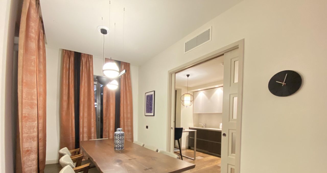 В апартаментах выполнен ремонт по индивидуальному дизайн-проекту с применением экологически чистых и высококачественных строительно-отделочных материалов. Апартаменты укомплектованы всей необходимой мебелью и бытовой техникой для комфортного проживания.