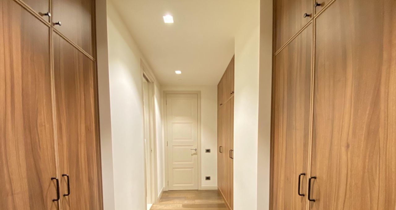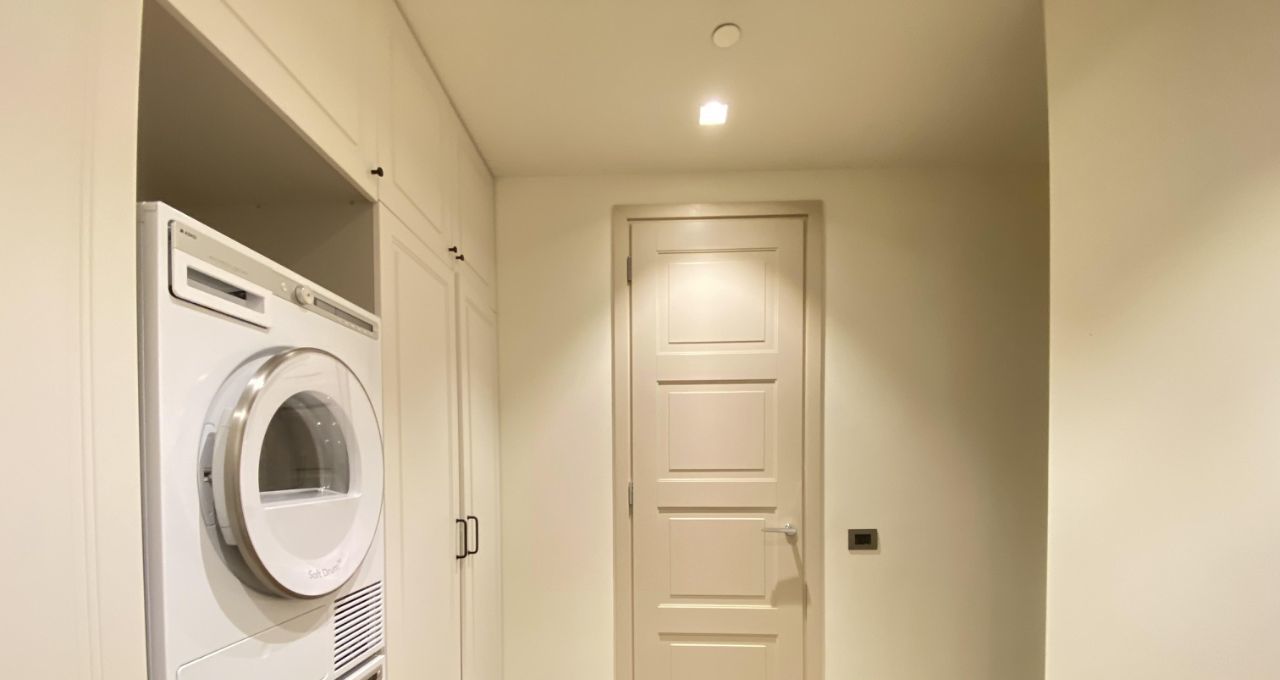 По планировке: кухня, просторная гостевая комната с выделенной обеденной зоной, прачечная, прихожая, три мастер спальни со своими санузлами, гардеробными комнатами и встроенными шкафами, отдельный гостевой санузел, отдельно выделенная зона при прачечной для хранения вещей.