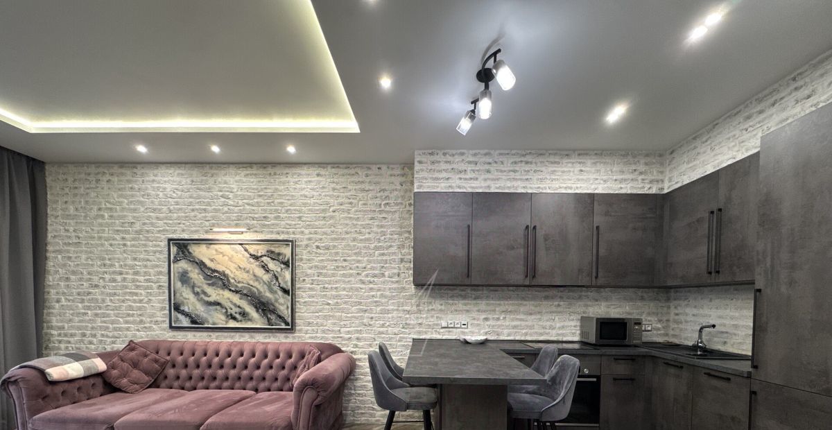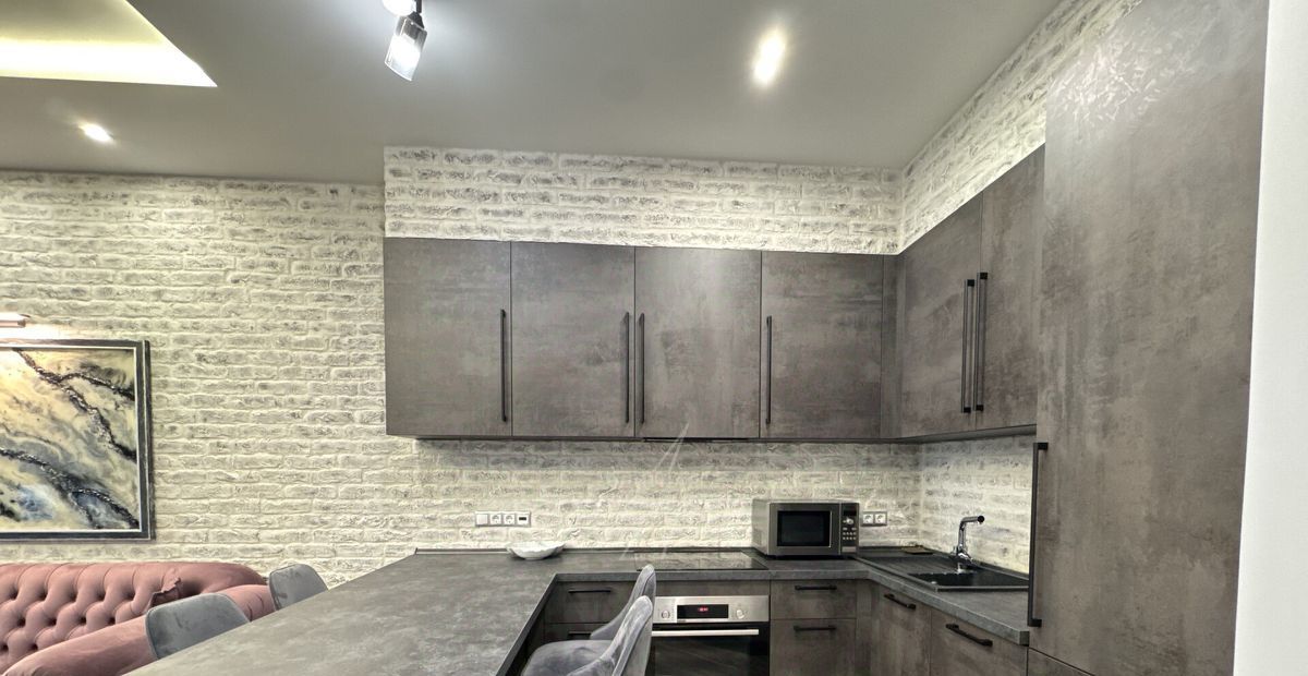 Ремонт в Лофт стиле. Квартира полностью с мебелью, любые детали индивидуально обсуждаются. Окна выходят на две стороны: на улицу, где виден строящийся дом под офис и во двор. В квартире выполнена хорошая шумоизоляция, при закрытых окнах со стороны стройки ничего не слышно. Есть гардеробная комната и много больших встраиваемых шкафов. В наличии имеется вся необходимая бытовая техника + в каждой комнате есть кондиционер. В квартире очень тепло.