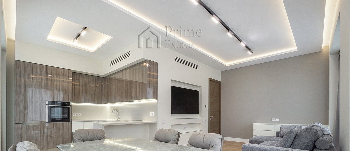 Установлена итальянская кухня со встроенный бытовой техникой премиальной немецкой марки NEFF, канальная система центрального кондиционирования на базе чиллер-фанкойл с пультами управления в каждой комнате, в санузлах теплые полы, в постирочной стиральная и сушильная машины LG, бойлер.