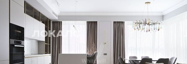 Просторная квартира с тремя спальнями общей площадью 134 м² в комплексе премиум-класса Prime Park с входной группой от британского бюро Dyer. Угловая квартира расположена на пятнадцатом этаже в башне R7. Интерьер оформлен в современном стиле в приятных светлых тонах. Квартира полностью меблирована и укомплектована техникой.