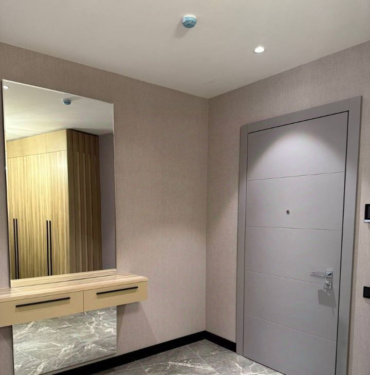 В квартире выполнен современный ремонт, двуслойная шумоизоляция, панорамные окна с видом на залив, регулируемые теплые полы, потолки 3 м, форточки на электроприводе, установлен IP-видеодомофон с поддержкой Wi-Fi и мобильным приложением, позволяющим отвечать на вызовы и просматривать видео с любого устройства.