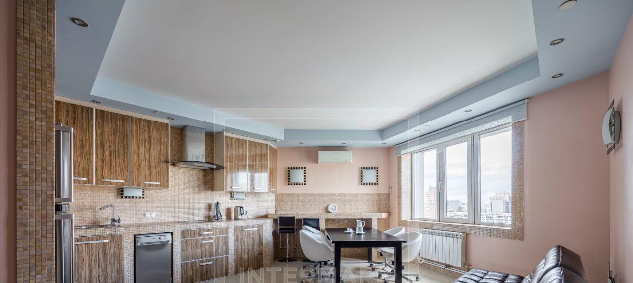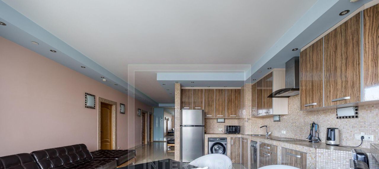 В квартире: С мебелью, Посудомоечная машина, Стиральная машина, Бойлер, Душевая кабина, Теплые полы, Кондиционер, Охрана, Интернет, Видовая квартира, Можно с детьми, Можно с животными, Изолированная кухня, Европланировка, Ванна, Интерьер в современном стиле, Консьерж, Гардеробная комната, Лифт, Кухонная мебель, Окна на улицу, Окна во двор
