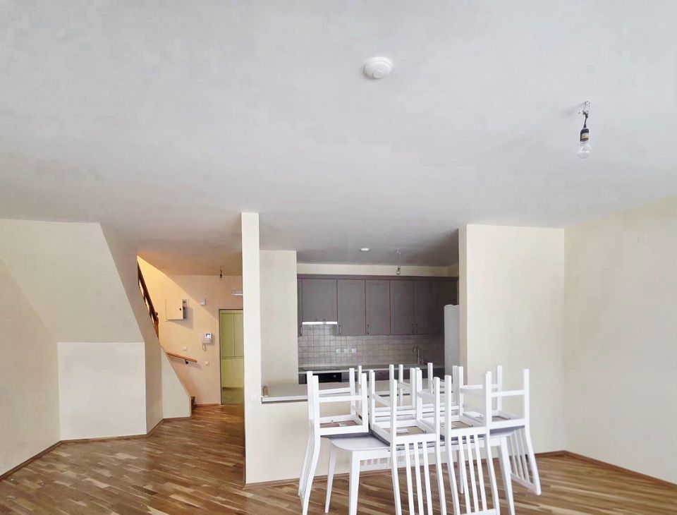 Двухуровневая квартира удобной планировки: просторная кухня-гостиная на 1 этаже, три спальни на 2 этаже, на каждом этаже свой с/y, 2 лоджии. В каждой комнате кондиционер.