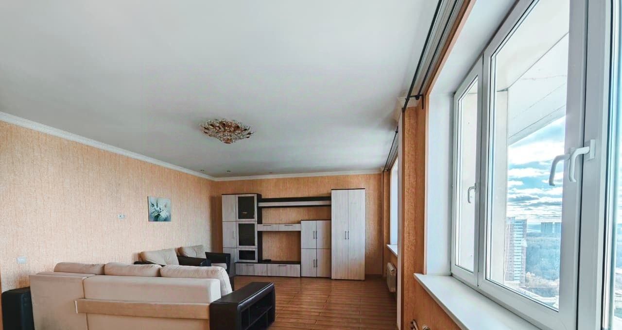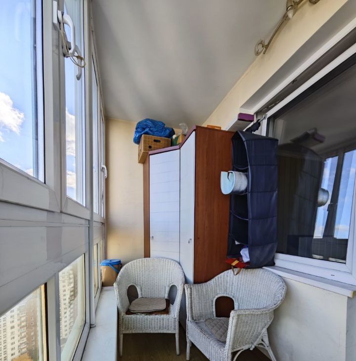 Окна выходят на улицу и во двор. Огромная лоджия . Панорамный вид на Москву .