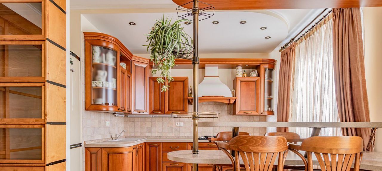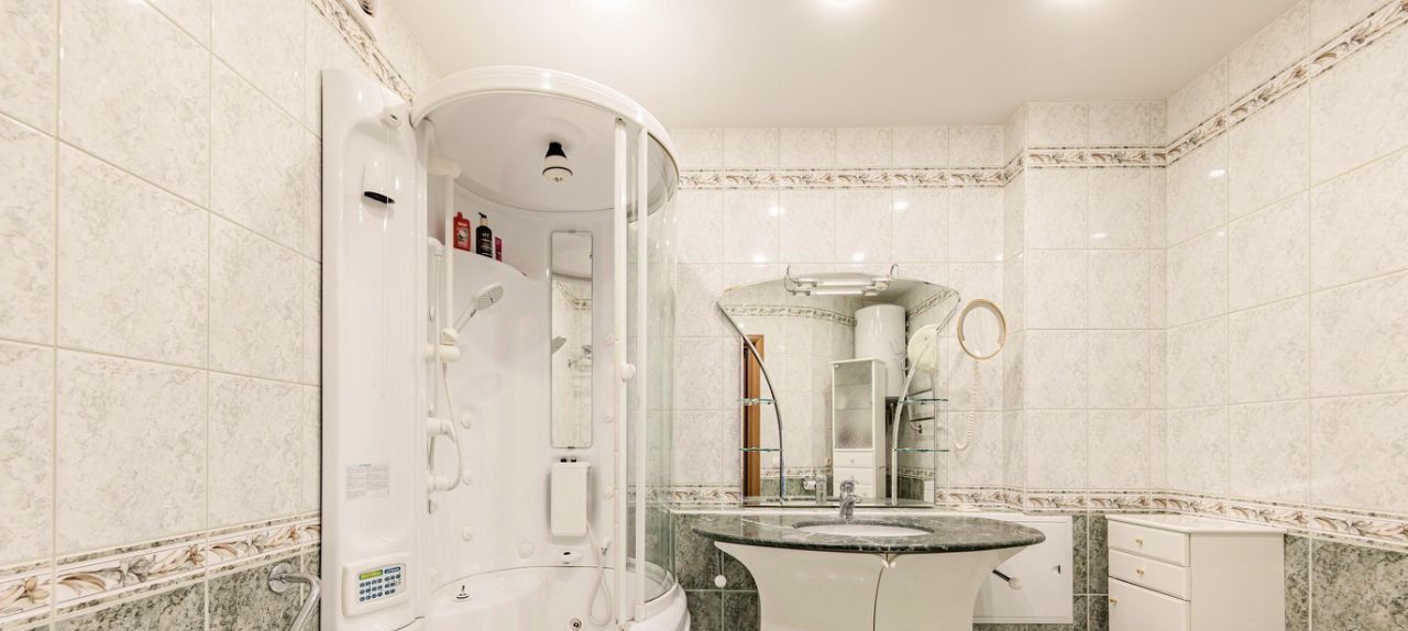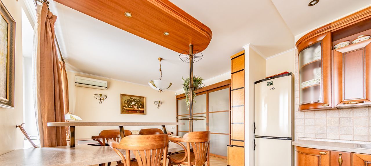 Квартира теплая, с хорошей шумоизоляцией, 8 этаж. Выполнен качественный ремонт в классическом стиле. Потолки 2.70. В каждой комнате установлены кондиционеры ( 5 штук). Имеется посудомоечная машина и бойлер.