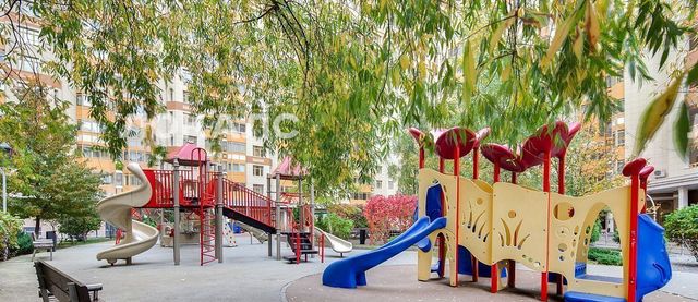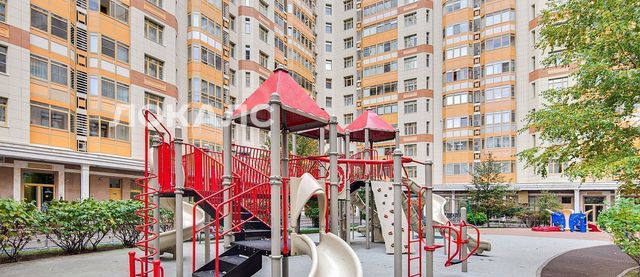 Роскошная территория комплекса с детскими площадками, спортивным ядром, на котором расположен малый теннис и корт для большого тенниса, баскетбольная, футбольная площадка, дорожки для бега и катания на роликах, велосипедах, зимой заливают каток, летом можно любоваться предметами ландшафтного дизайна. Этот вид приятно радует!