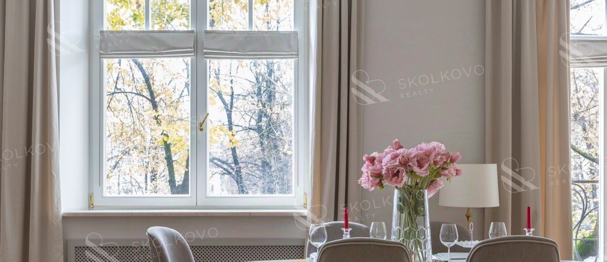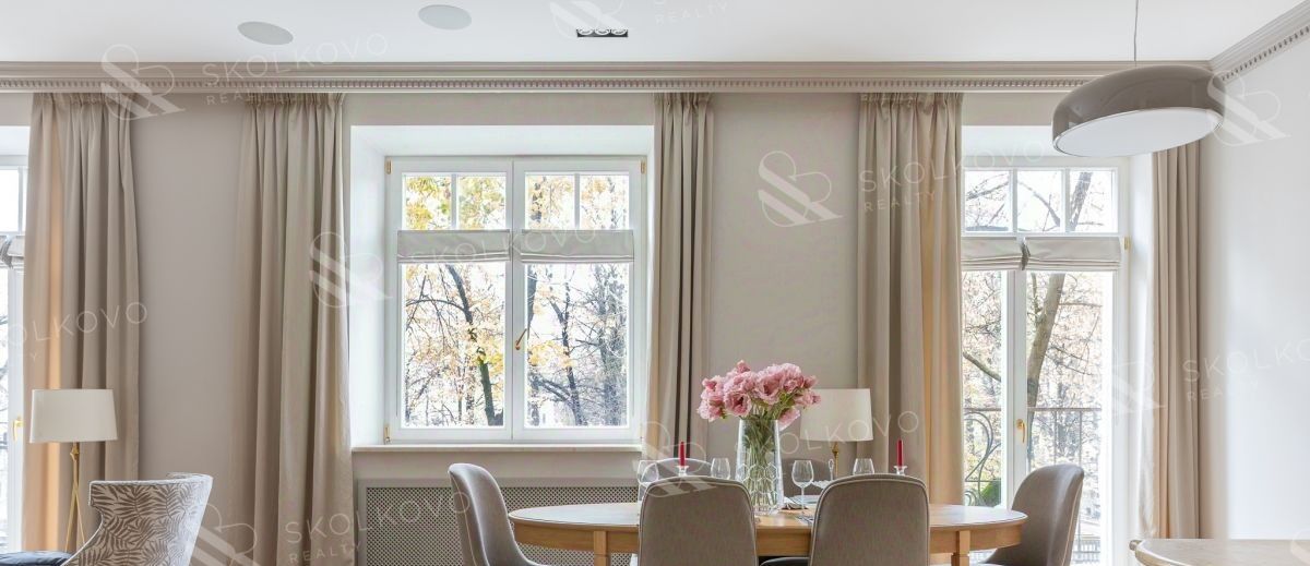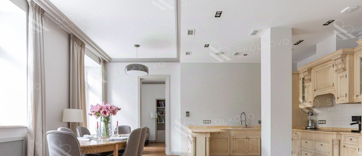 Высота потолков 3,2 метра добавляет атмосферу легкости и свободы, а балкон в гостиной открывает захватывающий вид на живописный Патриарший пруд.