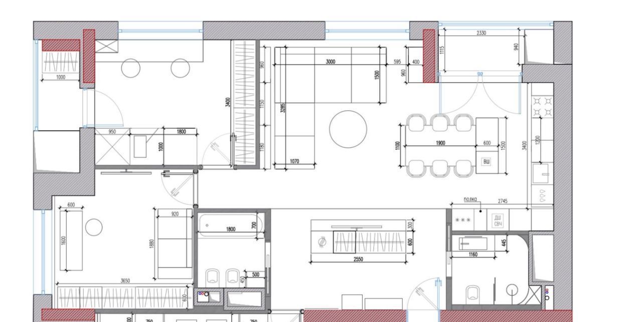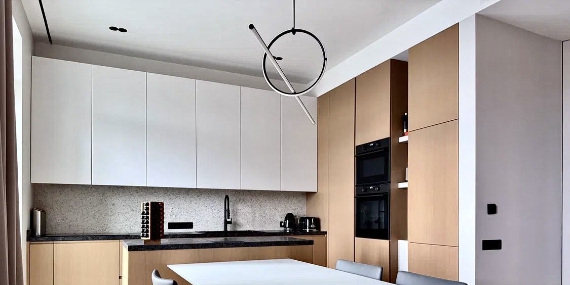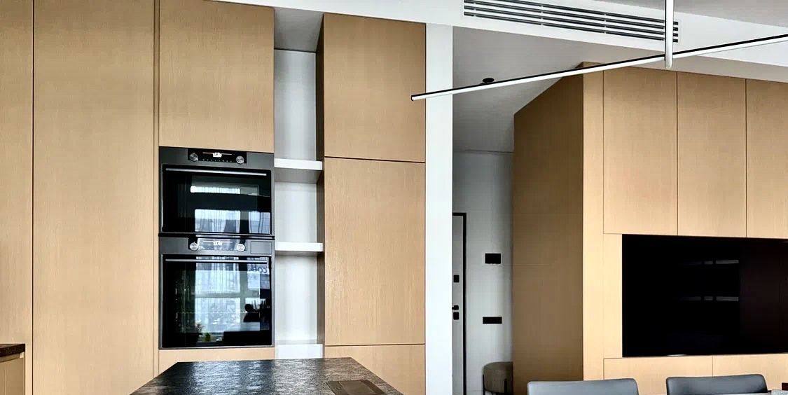 • просторная гостиная, совмещённая с кухней, оснащены новейшей бытовой техникой ведущих брендов, с выходом на лоджию