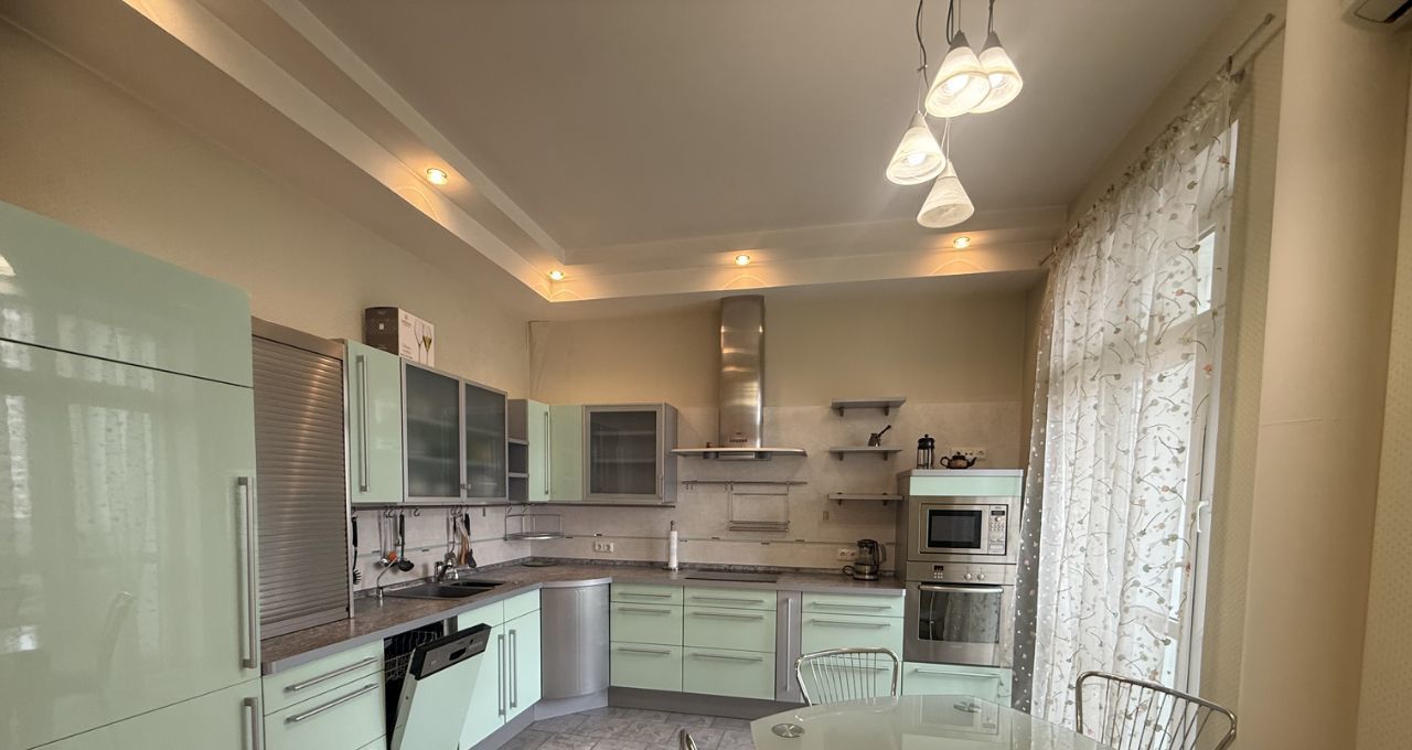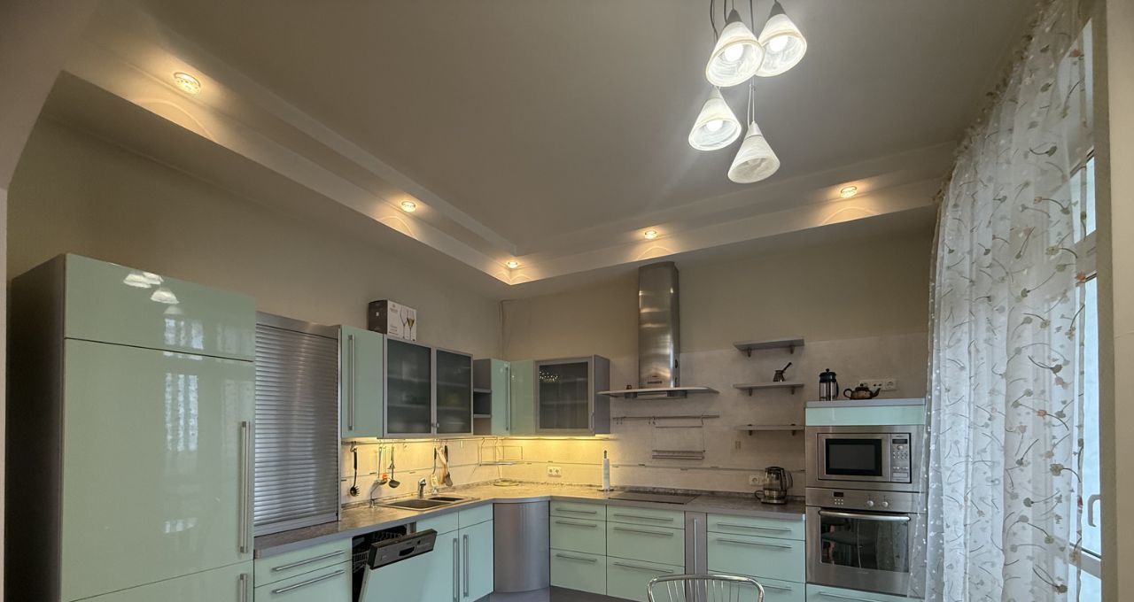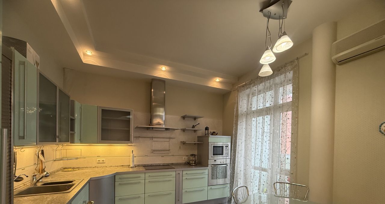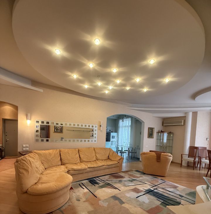 В квартире современная мебель и техника, 3 изолированные комнаты, кухня совмещенная с гостиной (40 кв.м.)лоджия , балкон large balcony. Высокие потолки. Чистота, комфорт и превратность..