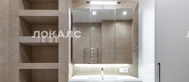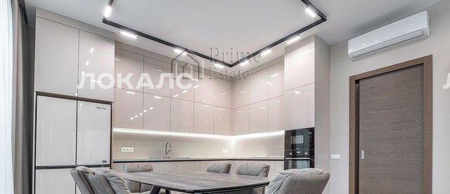 Мебель изготовлена на заказ. Большое количество встроенных шкафов для хранения. Бытовая техника и сантехника от ведущих производителей.