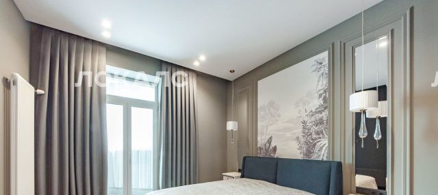 Планировка: Кухня-гостиная с просторной лоджией, 3 изолированные спальни, 2 гардеробные, 2 сан/узла, много встроенных шкафов для хранения. В каждой спальне кровати с ортопедическими матрасами, жалюзи.