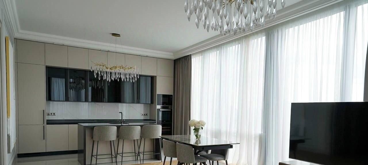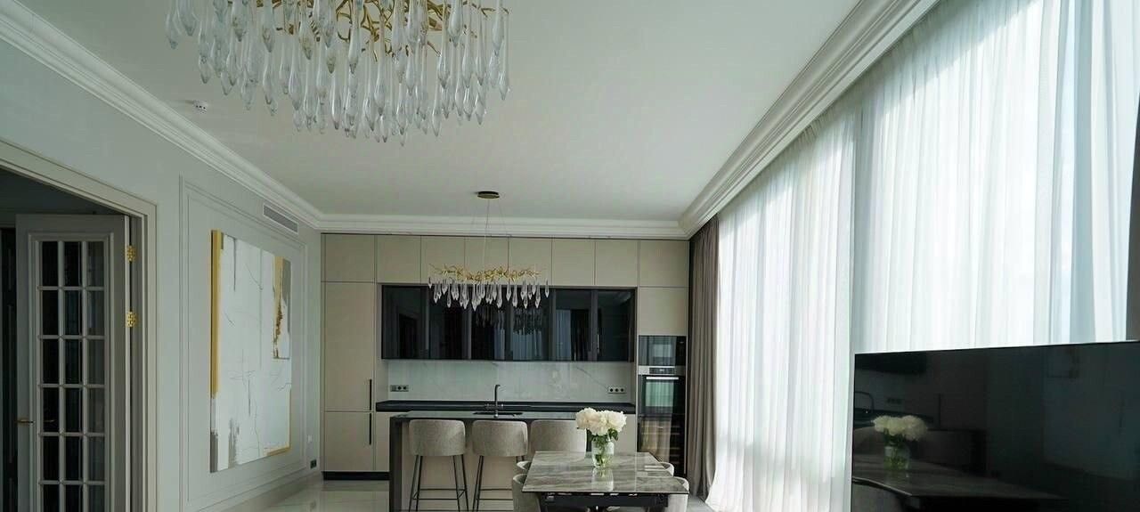 Предлагается в аренду шикарная квартира в ЖК " Дом на Мосфильмовской". Функциональная планировка: просторная кухня-гостиная, с зоной столовой, три спальни, кабинет, много мест хранения ,три санузла, постирочная, прихожая. В квартире выполнен дизайнерский ремонт, с использованием дорогостоящих материалов, премиальной техникой и мебелью. В шаговой доступности находятся магазины, кафе, фитнес, салоны красоты, парковая зона для прогулок и остановки общественного транспорта.