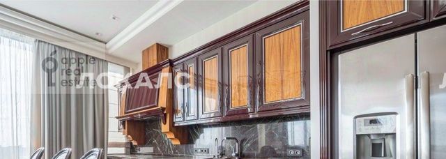 ЖК Дом на Мосфильмовской. Стильная 4-комнатная квартира в новом современном доме. 36 / 53 этаж по дизайн-проекту студии Art Team. Спален: 3, санузлов: 2. Общая площадь: 170 кв.м. Потолки 3,3 м. Ремонт в классическом стиле. Квартира с мебелью из США и Великобритании от таких производителей, как Henredon, Bakker, Hooker, Tetrad (Fabian Smith), вывоз невозможен. Огороженная, охраняемая территория. Подземный паркинг, машиноместо входит в стоимость. Панорамный вид из окна. Есть гардеробная комната, Итальянская кухня Brummel Cucine, премиальная техника Kuppersbusch. В наличии: посудомоечная машина, холодильник, приточно-вытяжная система вентиляции и кондиционирования, кондиционер, бойлер, душевая кабина, ванна, постирочная комната, стиральная машина, сушильная машина, подогрев полов. Телевизор, высокоскоростной интернет. Можно с детьми. Можно с животными.