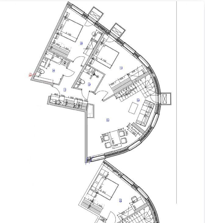 Отличная планировка, кухня совмещенная с гостиной, 4 спальни, три санузла с душевой и ванной, балкон .
