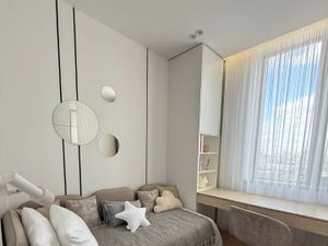 В квартире выполнен дизайнерский ремонт, все продумано до мелочей. Пространство организовано с учетом комфорта и эстетики. В одной комнате есть мебель, а кухня полностью оборудована необходимой техникой: кондиционер, холодильник, посудомоечная и стиральная машины. Четыре совмещенных санузла оснащены как ваннами, так и душевыми кабинами, что делает проживание максимально удобным.