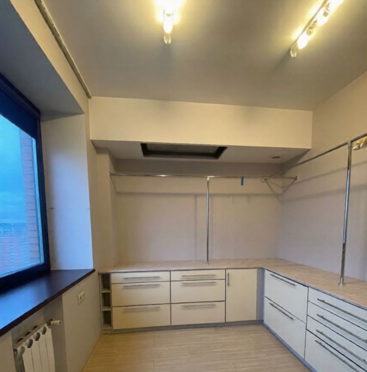 Функциональная планировка квартиры: гостиная, кухня, 2 изолированные комнаты, вместо 4-й комнаты сделали 2 большие гардеробные комнаты, 1 совмещенный с/у с ванной и душевой кабиной, 1 гостевой с/у, холл. Есть огромная лоджия и балкон. Квартира полностью меблирована и укомплектована всей необходимой техникой для комфортного проживания. Из окон открывается вид на заповедник поймы реки Сетунь, Москва-Сити и Поклонную гору. В квартире есть кровать и диван (не представлено на фото). Покупка дополнительной мебели обсуждается индивидуально.