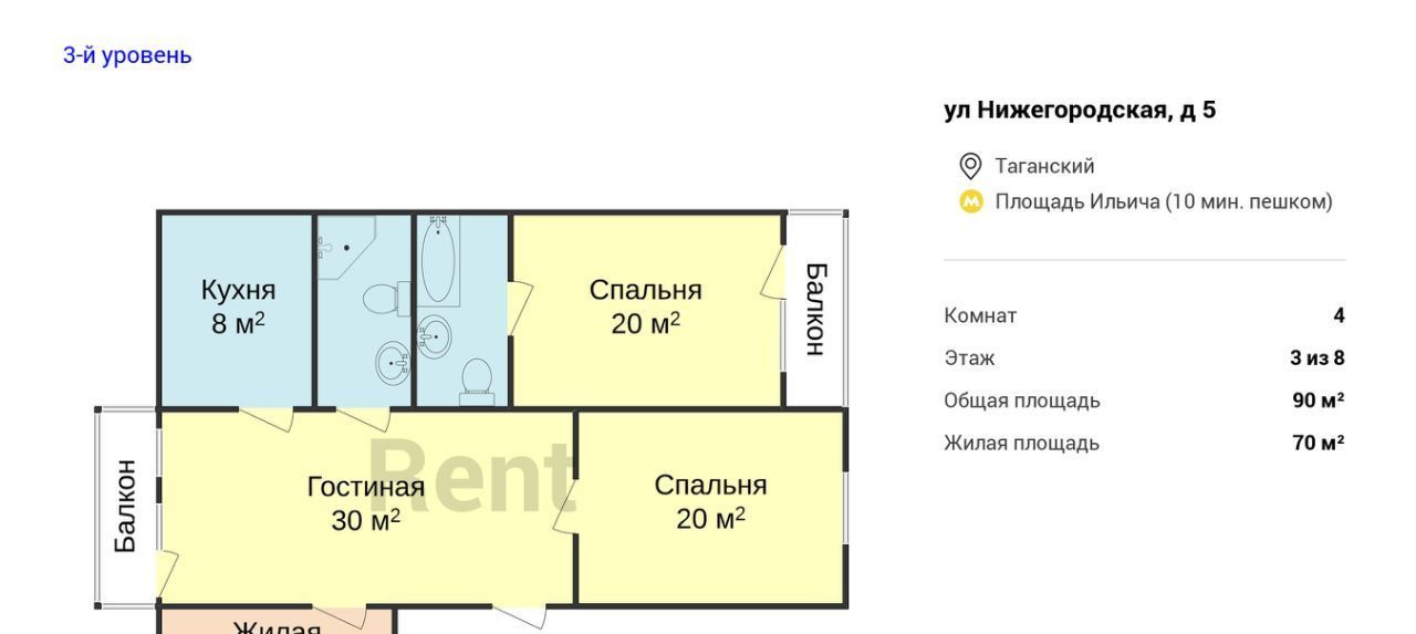 В 10-11 минутах ходьбы от метро "Площадь Ильича" предлагается уютная трехкомнатная квартира. Комнаты располагают изящной мебелью, а стильная кухня оборудована необходимым комплектом техники. Комфортный микроклимат обеспечивает сплит-сиситема. Оборудованы две ванные комнаты. Есть выход на балконы.