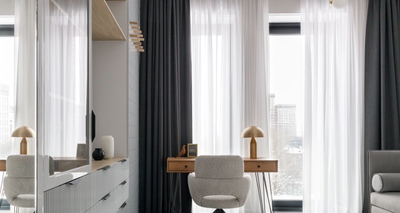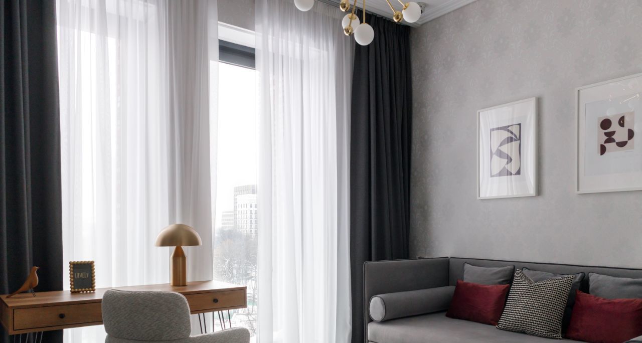 Кабинет с рабочим столом и раскладывающимся диваном.