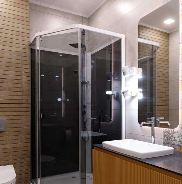 Второй санузел с душевой кабиной, отдельная кладовка со стиральной и сушильной машинами, системой хранения.